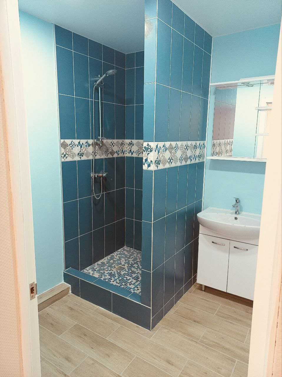 В продаже уютный дуплекс. Расположен в Сукко на улице Лесной, рядом с можжевеловым заповедником. До моря 1,8 км, до центральных магазинов (Пятерочка, промтовары, домашняя кулинария и строительный) 300 метров. У дома личная парковка, бетонированная на 2 автомобиля. Есть свой въезд с воротами. Участок ровный, вход в дом с улицы с индивидуальным крытым крыльцом и небольшим палисадником при входе. Вход в дом осуществляется на второй этаж. Есть летняя кухня 30 кв.м. Индивидуальная скважина, канализация – индивидуальный септик (с компрессором и системой очистки 98%). Сделана ливневая канализация. На первом этаже: бойлерная (5 кв.м.); кухня – гостинная 36,8 кв.м.; гостевая комната 8,2 кв.м; шкаф-кладовая 4 кв.м с дверьми – купе; санузел 6,6 кв.м с большой ванной и унитазом инсталяцией, высота потолков первого этажа 2,8м. На втором этаже прихожая 7,4 кв.м. со шкафом – купе, 3 спальни (15,4, 17,6 и 13,9 кв.м.) с мансардными окнами, душевая 5,3 кв.м. с унитазом инсталяцией и местом для установки стиральной машины, холл. В двух комнатах разноуровневый потолок 2,8 – 4,5 м. Высота второго этажа 2,8м. Есть выход на чердак (откидная лестница). Сделана полная отделка: стены обои с покраской, розетки, бра, люстры, установлена вся сантехника. Санузлы первого и второго этажа – плитка на полу, на стенах (комбинированная, в мокрых зонах, Полы на обоих этажах – керамогранит, выполнена водяная система теплых полов с регулировкой и электрическим котлом (в бойлерной). Установлен бойлер на 150 литров. Мощность электропитания: 15кВт. Сделаны выходы воды для полива на входе и в летней кухне. Вдоль летней кухни сделаны клумбы. Забор по периметру участка – металлический штакетник. Ул. Лестная – тихое место, не проходное, что дает возможность спать с открытыми окнами, без жума ночных клубов и пляжных гуляний. Со второго этажа открывается вид на горы Сукко. Участок: 4,34 сотки, оформлен в собственность. Дом зарегистрирован – имеются все документы. К дуплексу примыкает второй (зеркальный) дуплекс с отдельным входом и отдельным участком. Объект готов к продаже, возможна ипотека и субсидии. Строение 2