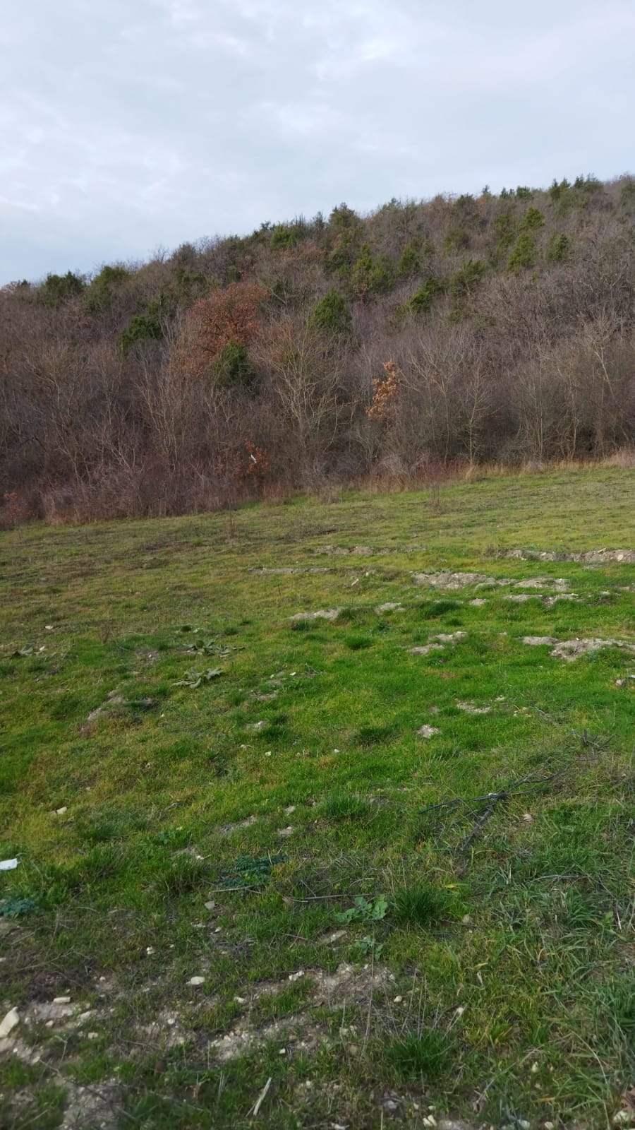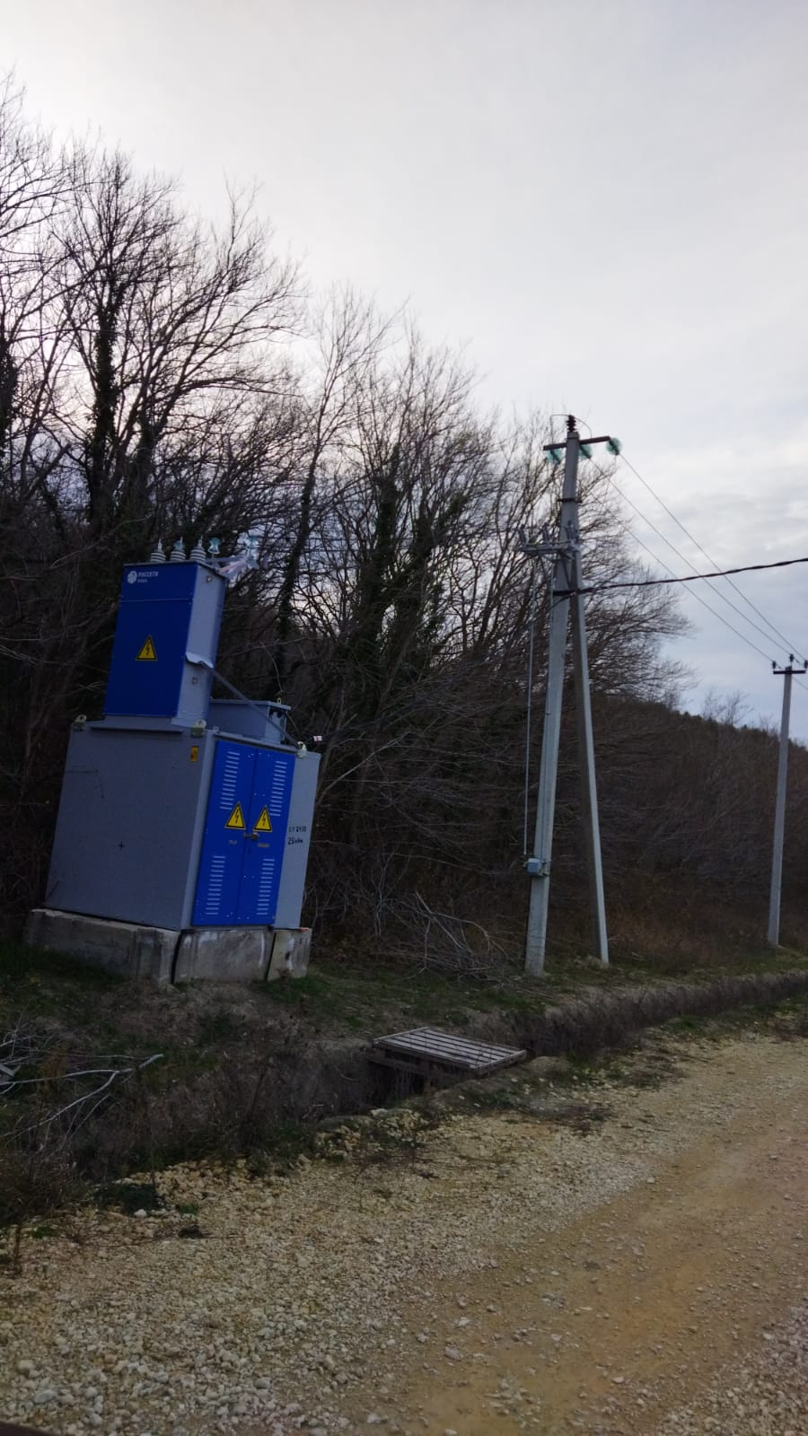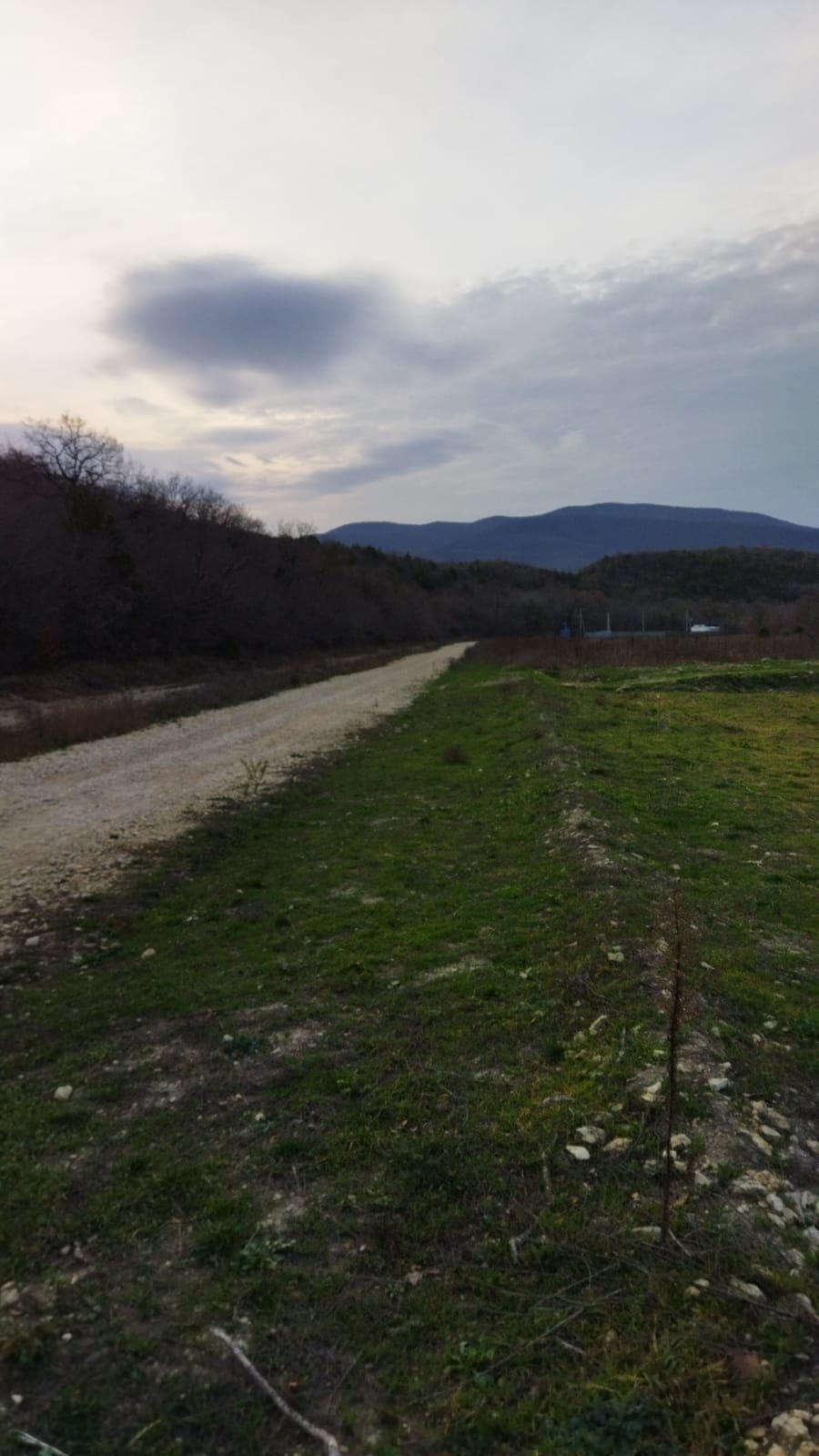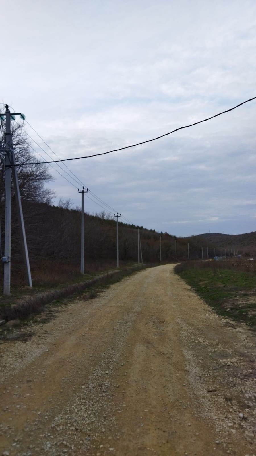 Фасад 17 метров, глубиной 50 метров. Сзади участка лес. Дорога отсыпана крупным щебнем. Вдоль дороги установлены электро столбы.