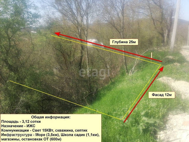 Продам земельный участок в Анапском районе, с.Сукко (в 11км от города-курорта Анапы, с собственным пляжем). Участок расположен вокруг межевальных лесов (заповедник Большой Утриш), общая площадь 3,12 сотки.. Категория земель: Земли поселений (земли населенных пунктов) - для целей жилищного строительства. ИЖС. Фасад 12 метров, глубина участка 25 метр. Участок прямоугольной формы, возле участка столб для подключения электричества. Дороги отсыпаны щебнем, до асфальта 300м. Строительство в данном районе идет активно, идеальный вариант для строительства дома мечты! Участок находится на возвышенности. Не подтопляемое место. В посёлке развитая инфраструктура, школа и садики, магазины, много уникальных туристических мест. До моря 10 мин на машине, до остановки ОТ 5 мин пешком. Рядом Кипарисовое озеро 1 км, до берега моря с галечным пляжем 4 км. Звоните