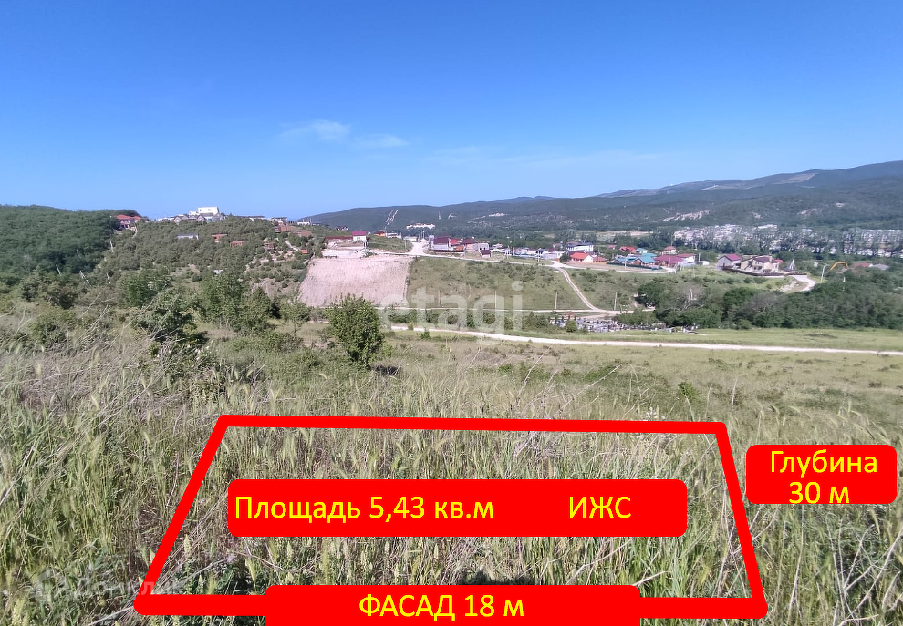 Участок площадью чуть больше 5,4 соток с хорошим фасадом в 18 метров. Участок расположился поистине в заповедной зоне, где аромат реликтовых деревьев. Подъезд к участку из твердой насыпи и щебня. В пределах 1,5-2 км Замок Львиная голова, корты для большого тенниса (крытые и открытые), Кипарисовое озеро, Африканская деревня, Усадьба пасечника, детский парк Храброе сердце, конные прогулки, пруды для рыбалки, Винодельня, магазины. Автобусная остановка и центральная улица посёлка в 700 метрах. До берега с галечным пляжем 5 км. Рядом активно строятся и живут соседи.
