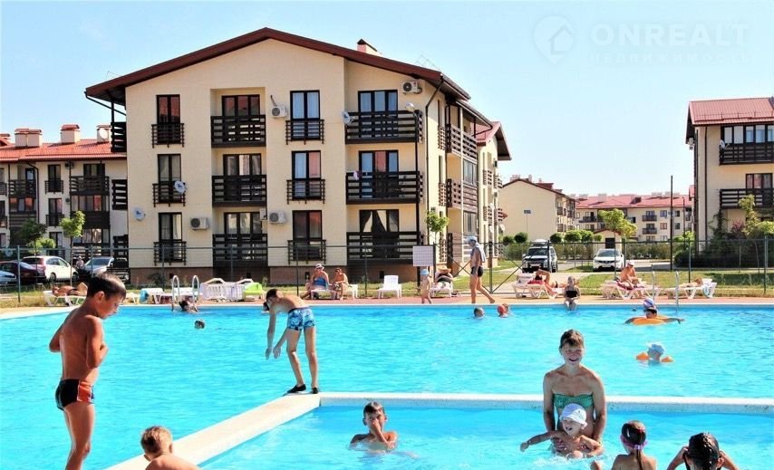 В вашем распоряжении будет уютная 1комн.квартира 37кв.м. в ЖК "Резиденция Утриш", с кухней, ванной, большим балконом на 1м этаже трехэтажного дома.