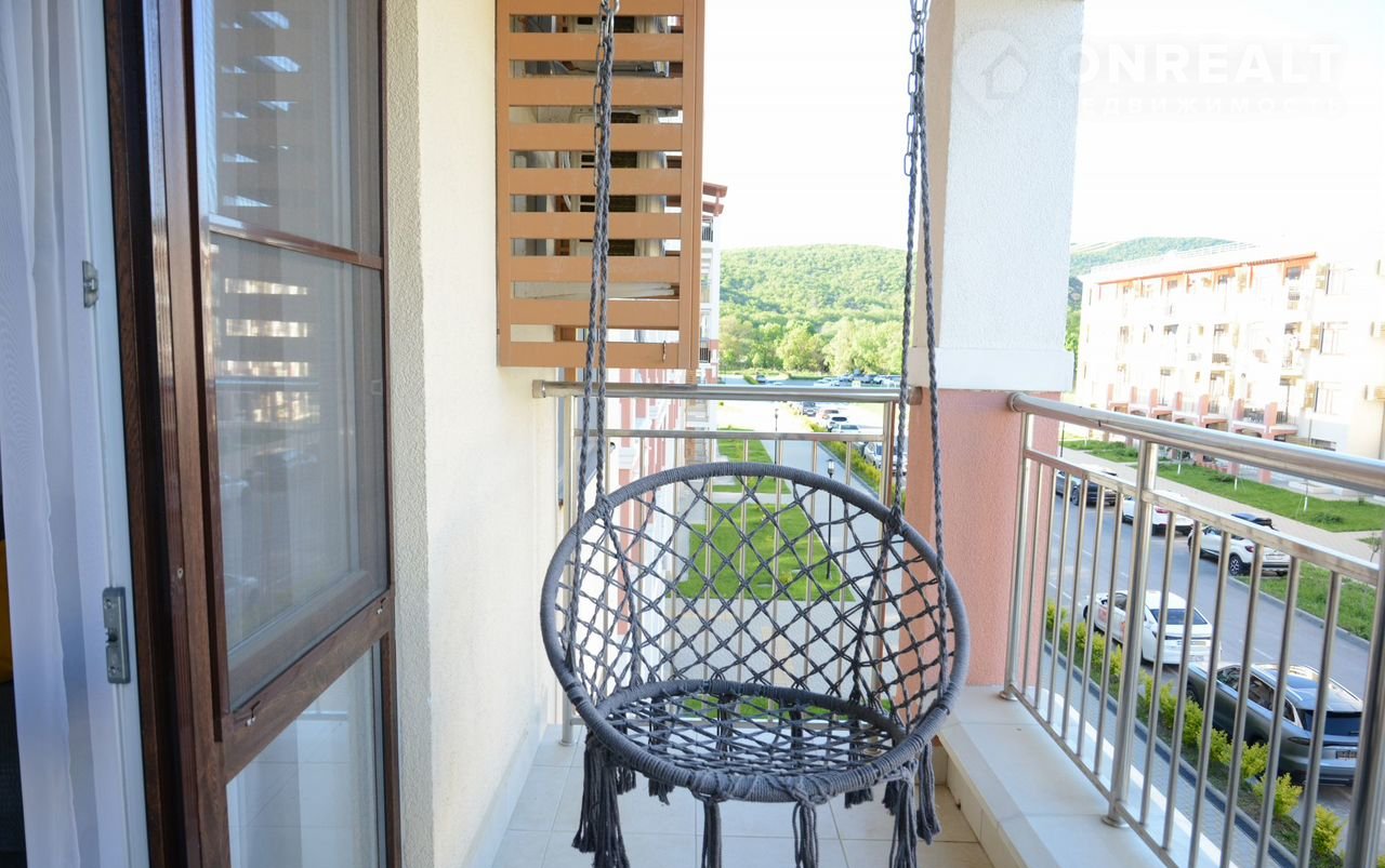 В квартире кухня гостиная + спальня. Утренний кофе на балконе. День, наполненный солнечными ваннами у сверкающего бассейна, и вечерние прогулки по тенистым аллеям леса.