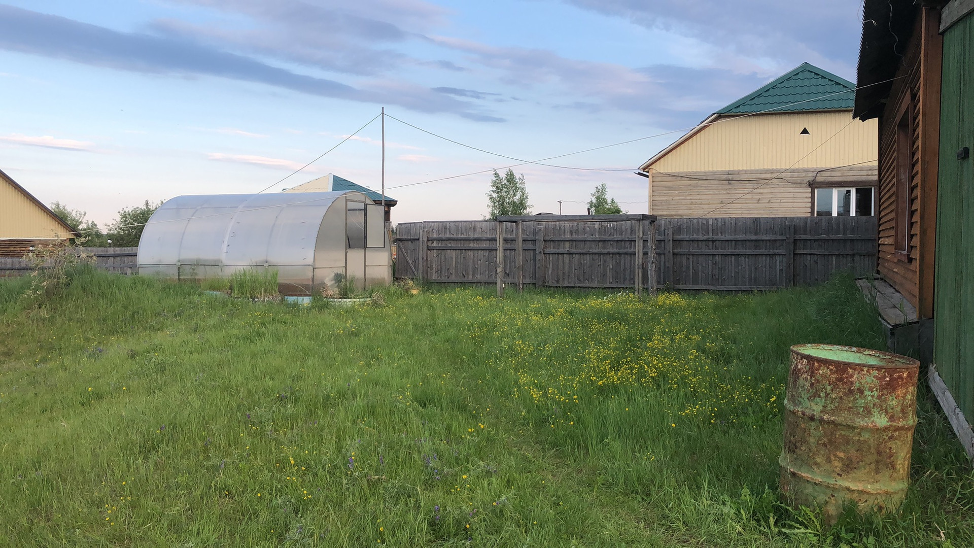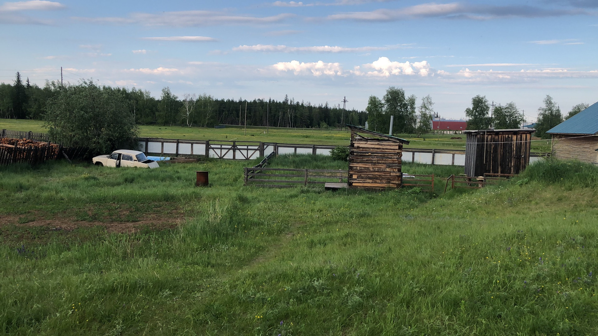 Постройки баня, кладовка, теплица, поле для картошки. Участок сухой, большой. Можно построить новый дом, гараж. Федеральная дорога, детский сад, река рядом. Без торга.