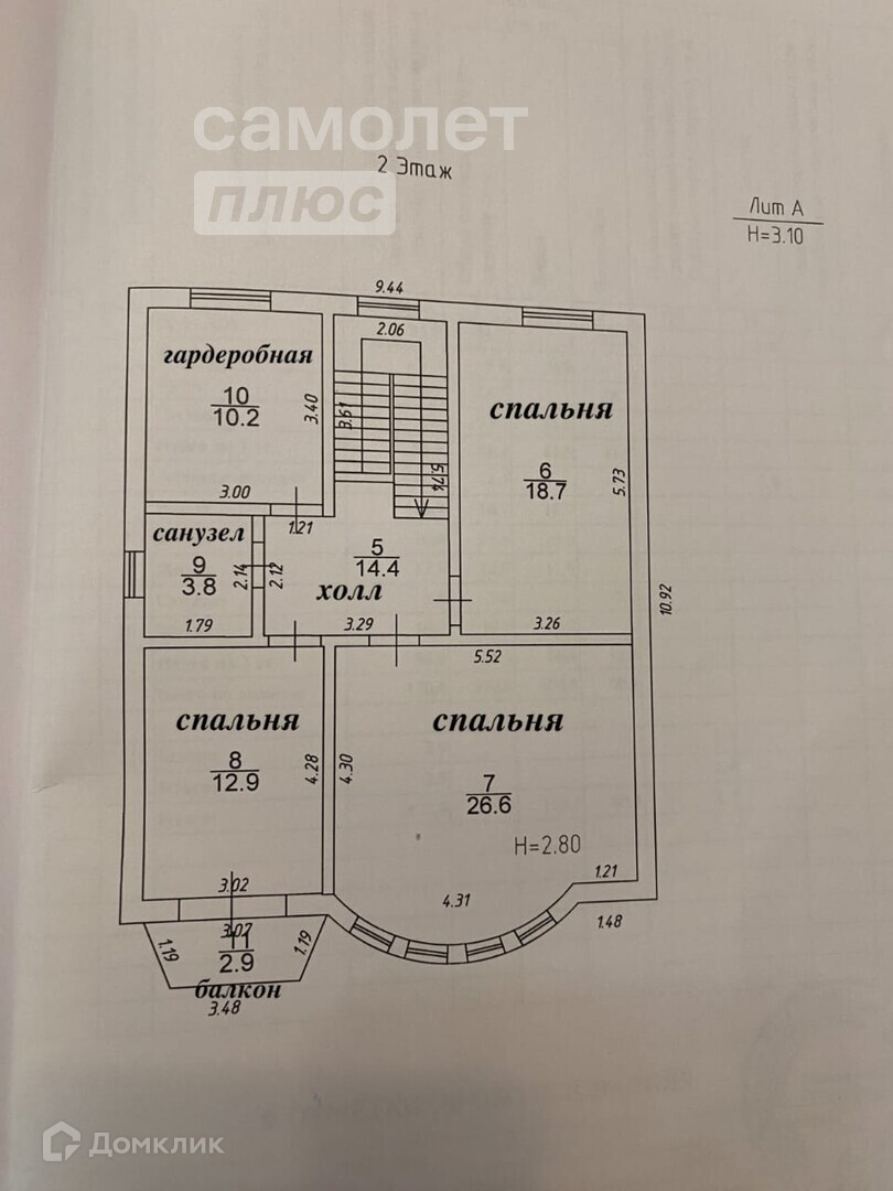 -В доме 3 спальни, прихожая, большая гостиная, кухня, 2 с/у, гардеробная, балкон, высота потолков 3 метра;