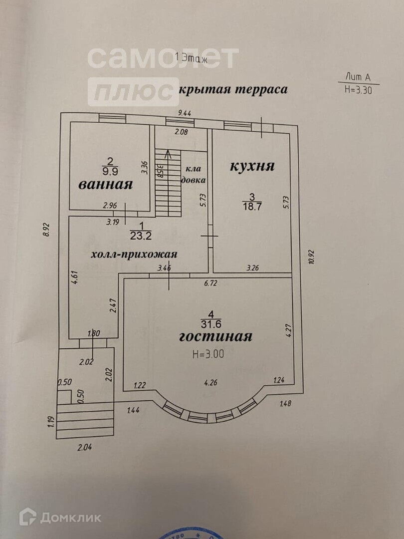 Высота потолков 3 м