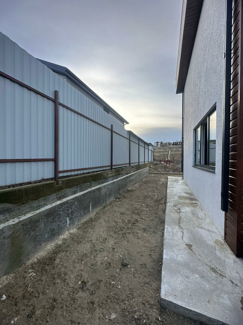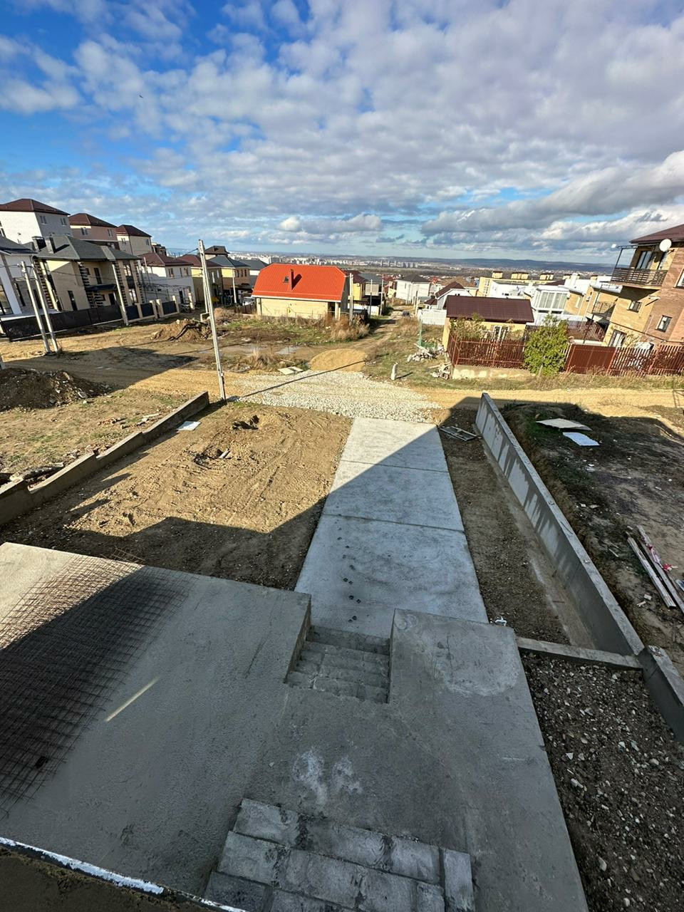 Ландшафтные работы: выравнивание участка, бетонная площадка у дома (терраса) , оборудовано парковочное место. Подготовлена основа для забора (фундамент).