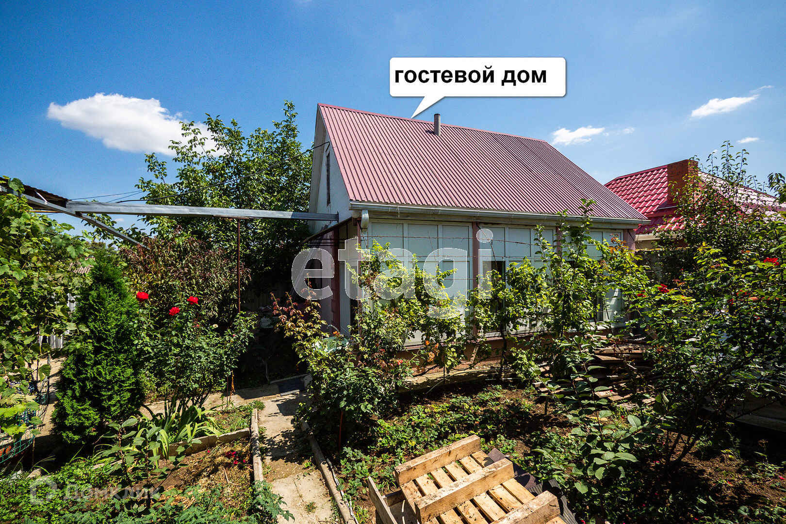 Продается дом в Супсехе. До центра Анапы 15 минут езды. Дом расположен на участке 4 сотки, улица тупиковая, посторонних нет, тихо и спокойно. Дом одноэтажный с мансардой,год постройки 2010. Общая площадь 98 кв.м, 1 этаж - 59 кв.м с потолками 3м, 2 этаж - 39,8 кв.м с потолками 2,85 м. Всего в доме 4 комнаты кухня-столовая, два санузла. Перед крыльцом сделан навес из поликарбоната. Есть пристрой к дому - открытая кухня-веранда, отдельно стоящий гостевой дом 34 кв.м. Все постройки современные, выполнены из блоков, гармонично смотрятся на участке. Отопление индивидуальное газовое, вода централизованная, септик. Участок ухоженный, много роз.Инфраструктура развита. Школа рядом, транспорт организован хорошо. Документы на дом и участок оформлены.