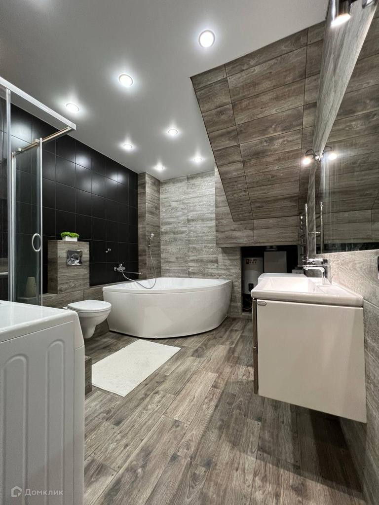 - Санузел в котором расположена как душевая так и большая угловая ванная