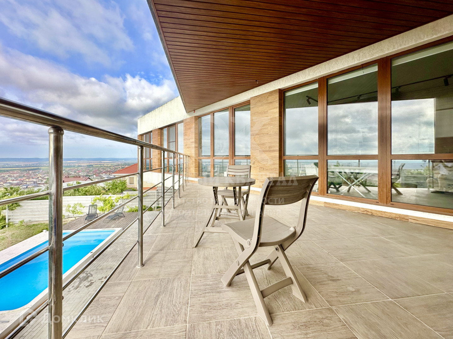 - большие панорамные окна с раздвижными конструкциями и затеняющим покрытием, отличное естественное освещение,