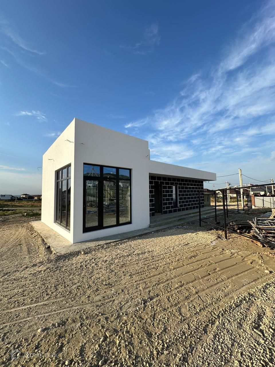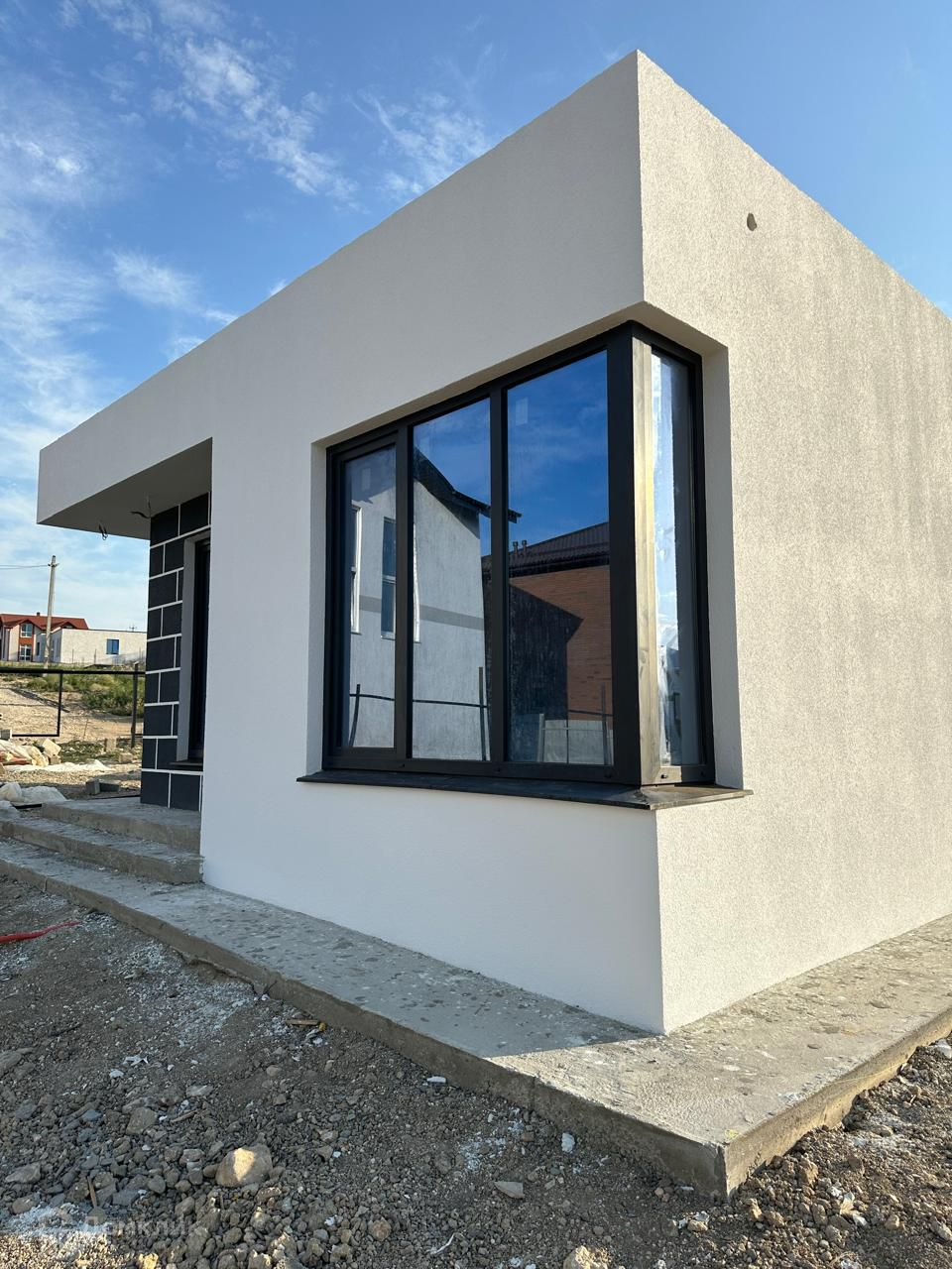 ID-42538. Продается новый дом в стиле хай-тек в ближайшем пригороде Анапы п. Супсех. Правая сторона, новый район, вокруг красивые новые дома. Дом общей площадью 76м2, кухня-гостиная 28м2, 2 изолированные спальни по 16 м2. Санузел совмещенный. Потолок с монолитным перекрытием, крыша эксплуатируемая. Окна панорамные. Подключены центральные газ с котлом, свет 15 кВт. Воду подключают отдельно за 190т руб. Теплые полы везде кроме спален. Двор, забор, ворота - застройщик сделает по себестоимости. Дом и участок на возвышенности. При обсуждении деталей сделки возможна скидка. Отличный вариант по интересной цене! До Анапы, моря 5 мин на авто.Звонки принимаются: Пн-Пт 9:00 - 18:00. Сб - 11:00 - 14:00