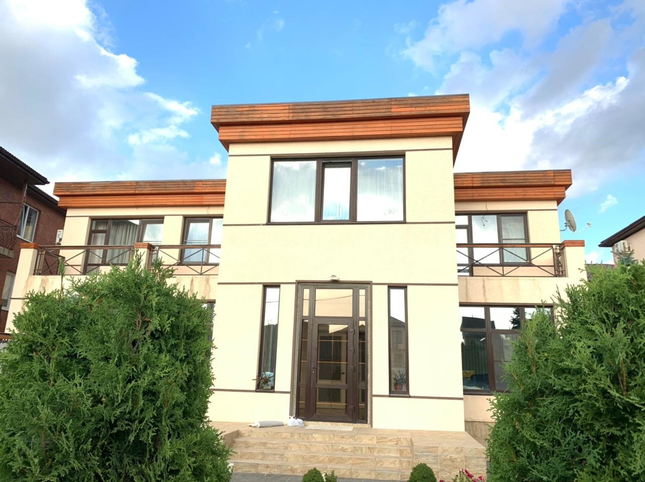 Дом построен на 6 сотках; двухэтажный, общей площадью 253 кв.м.: большая кухня-гостиная, 4 спальни, кабинет, гардеробная, топочная, два санузла. Потолки высокие, окна большие, много света и воздуха; красивая отделка, качественные материалы, фурнитура и сантехника. Установлены система "теплый пол" и сплит-системы в каждой комнате. Мебель и бытовая техника остаются по договоренности, все вопросы обсуждаются!