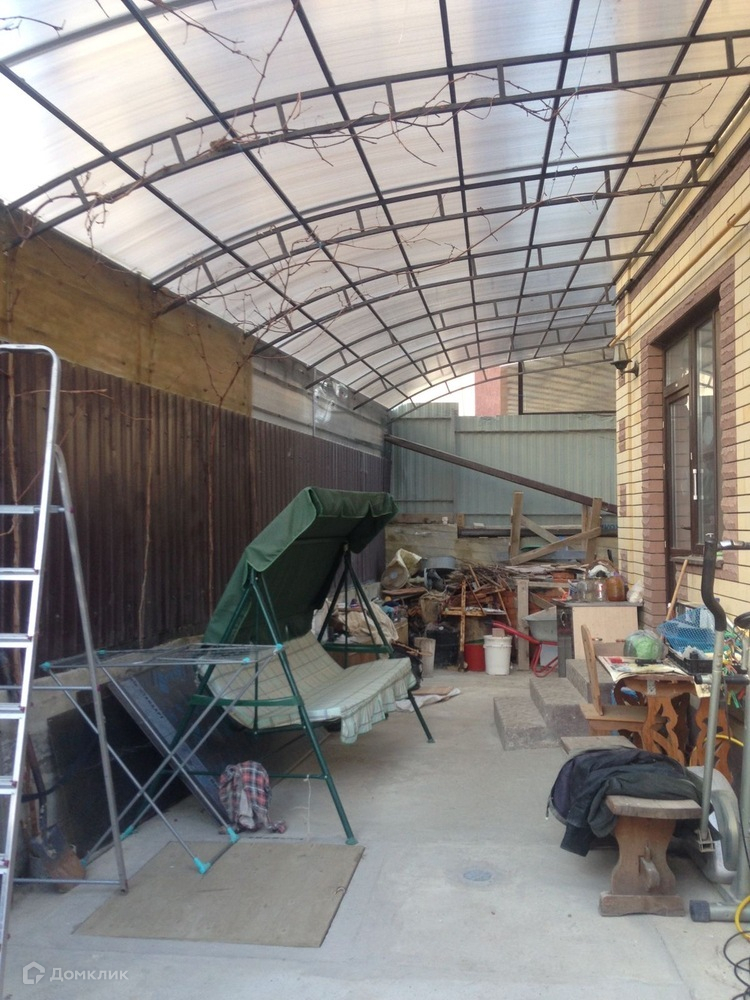 - Двор под навесом из поликарбоната, выложен плиткой, вместимость на две машины.