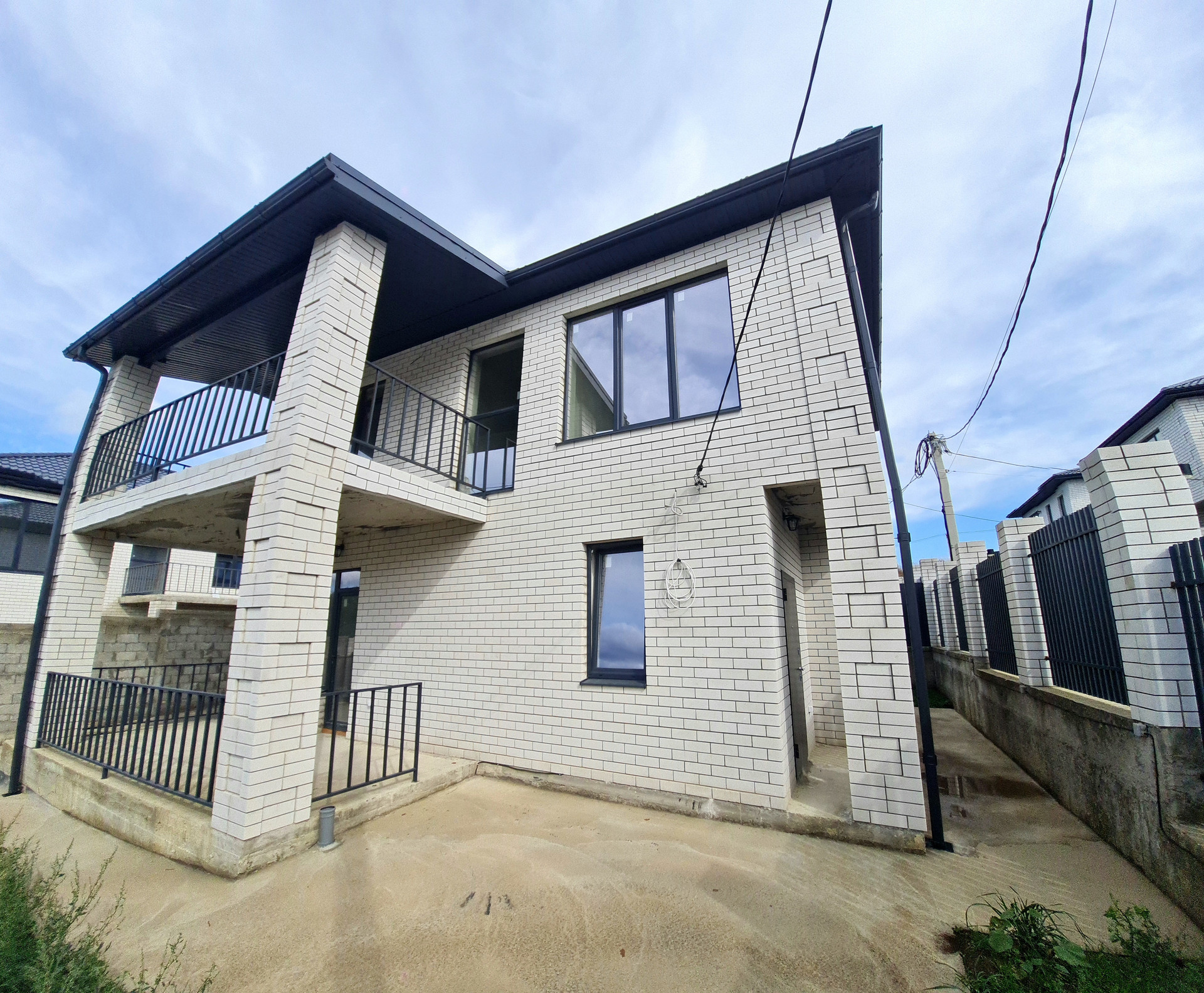 ℹ️ Участок: огорожен по периметру забором, по фасадной части штакетник с кирпичными колоннами в цвет дома. Заезд для автомобилей, дорожка к дому и отмостка по периметру дома забетонированы. Откатные ворота и калитка, уличное освещение на крыльце и террасе;
