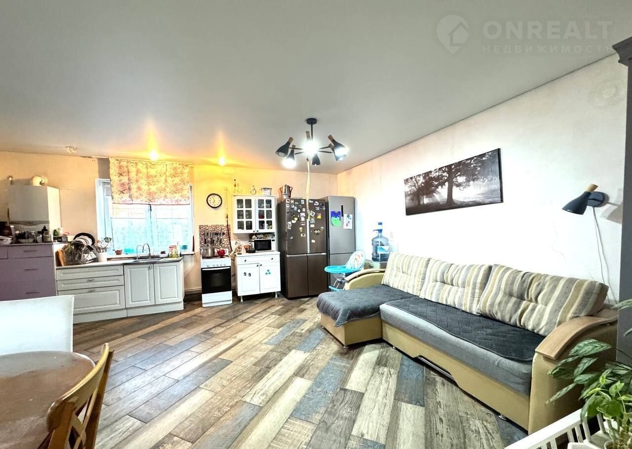 Дом блочный, утеплён стекловатой и облицован кирпичом . Пол на первом этаже - керамогранит. Отопление - тёплый пол, на втором этаже отопление  - радиаторы.   есть Бойлерная