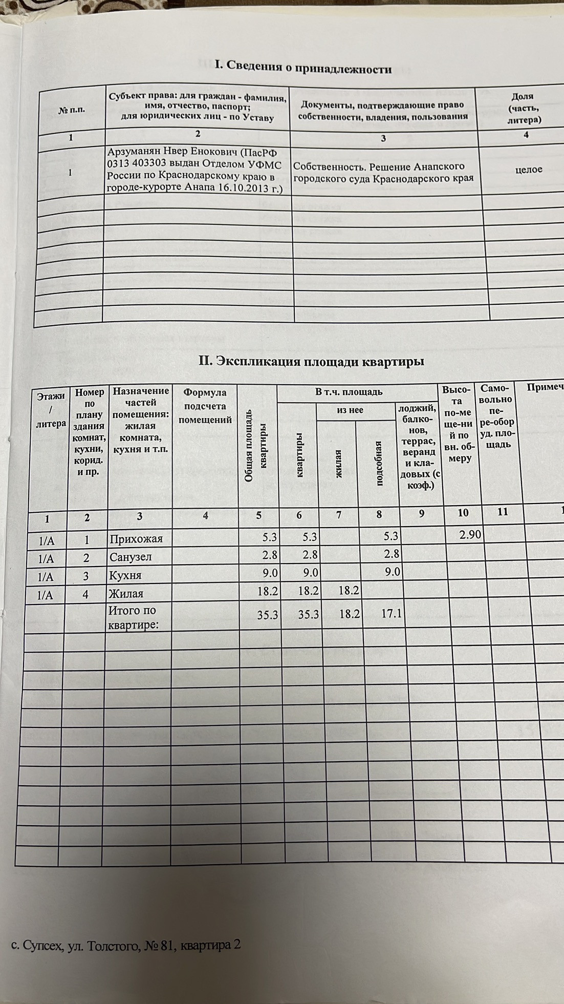 1-комнатная квартира, 35.3 м2, этаж 1 / 3, на продажу в селе Супсех, улица Толстого, 81