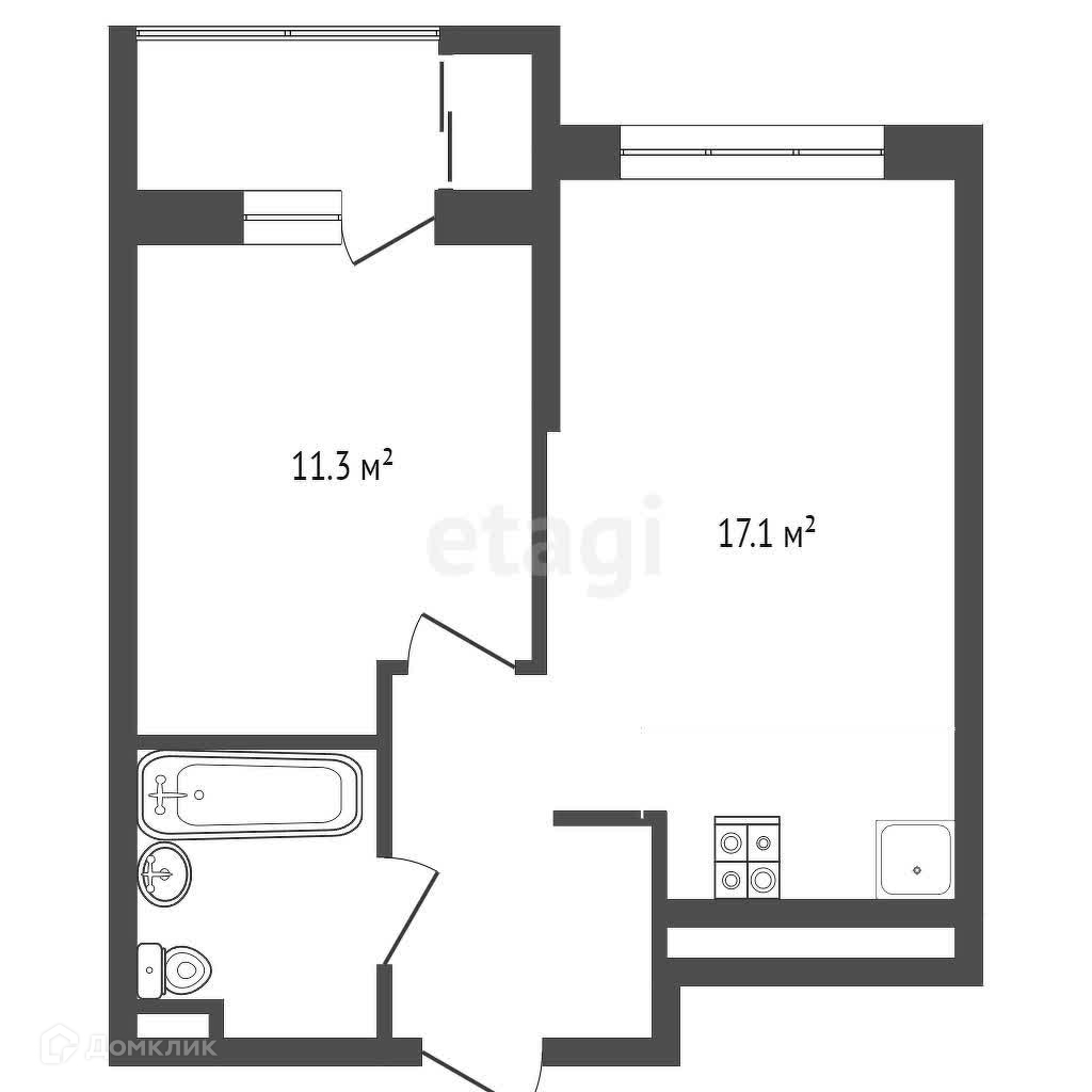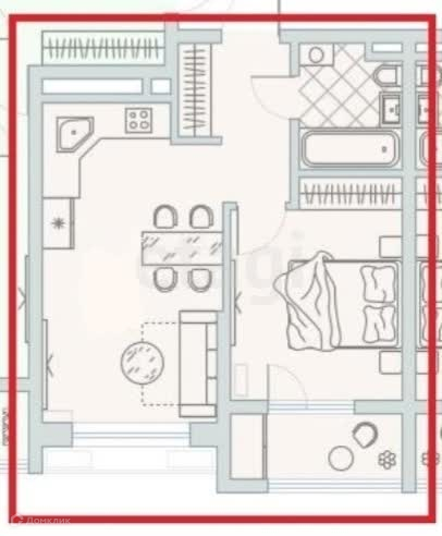 Квартира, площадью 40,1 м2, состоит из просторной кухни-гостиной, спальной комнаты с выходом на лоджию, совмещенного санузла.
