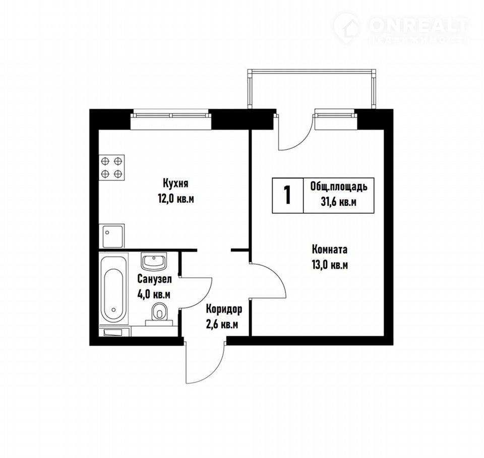 Общая площадь 32 м2