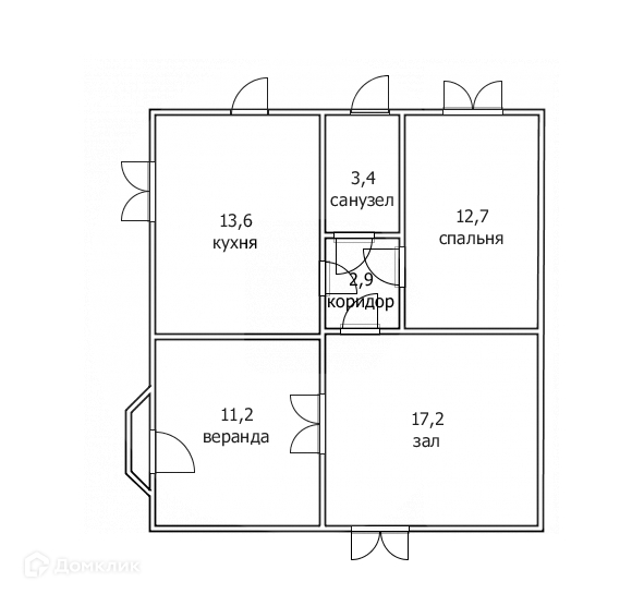 Квартира расположена на первом этаже и имеет площадь 61 кв.м., в квартире имеются две жилые комнаты площадью 12,7 кв.м. и 17,2 кв.м., просторная кухня площадью 13,6 кв.м., совмещенный санузел площадью 3,4 кв.м и веранда площадью 11,2 кв.м.