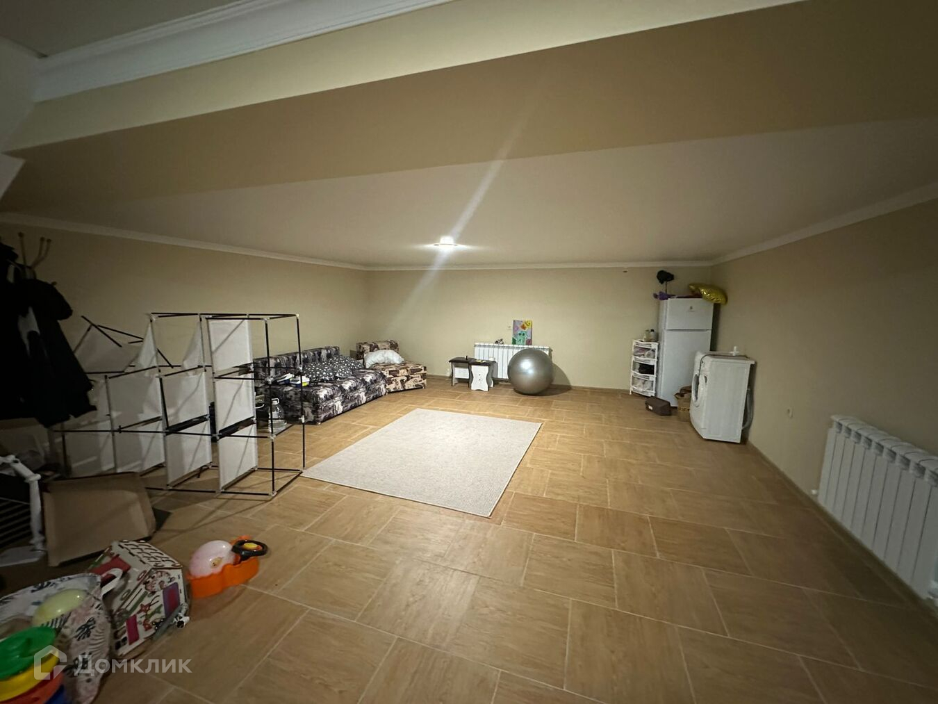Большое цокольное помещение, можно сделать кинотеатр, спортзал .. Гардеробная.