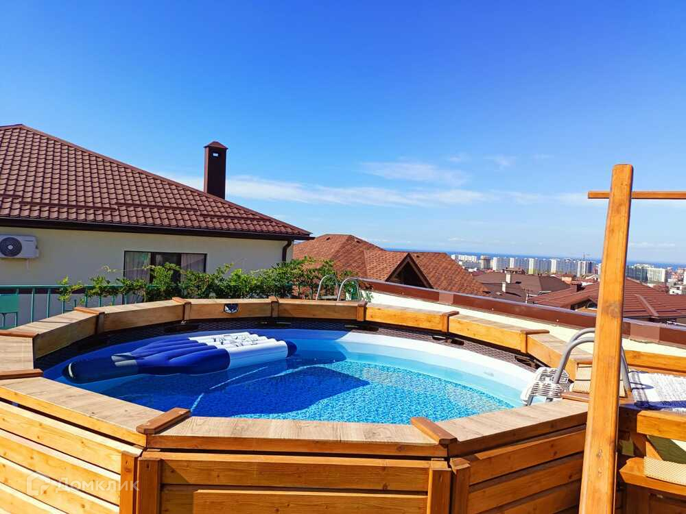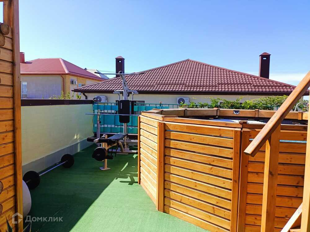 - Состоит из 5 комнат, 2 санузлов, эксплуатируемой крыши. Первый этаж - прихожая, кухня-гостиная, терраса, санузел, гостевая спальня. Второй этаж - 3 спальни с выходом на балконы, санузел с ванной и душевой. Третий этаж - спа-зона общей площадью 50 кв.м. В спа-зоне установлен каркасный бассейн 3х1,5 в деревянном ограждении, спортивный комплекс, сауна, душевая, барная стойка, холодильник, СВЧ-печь, музыкальная колонка, два шезлонга, стоят горшки с декоративными растениями.