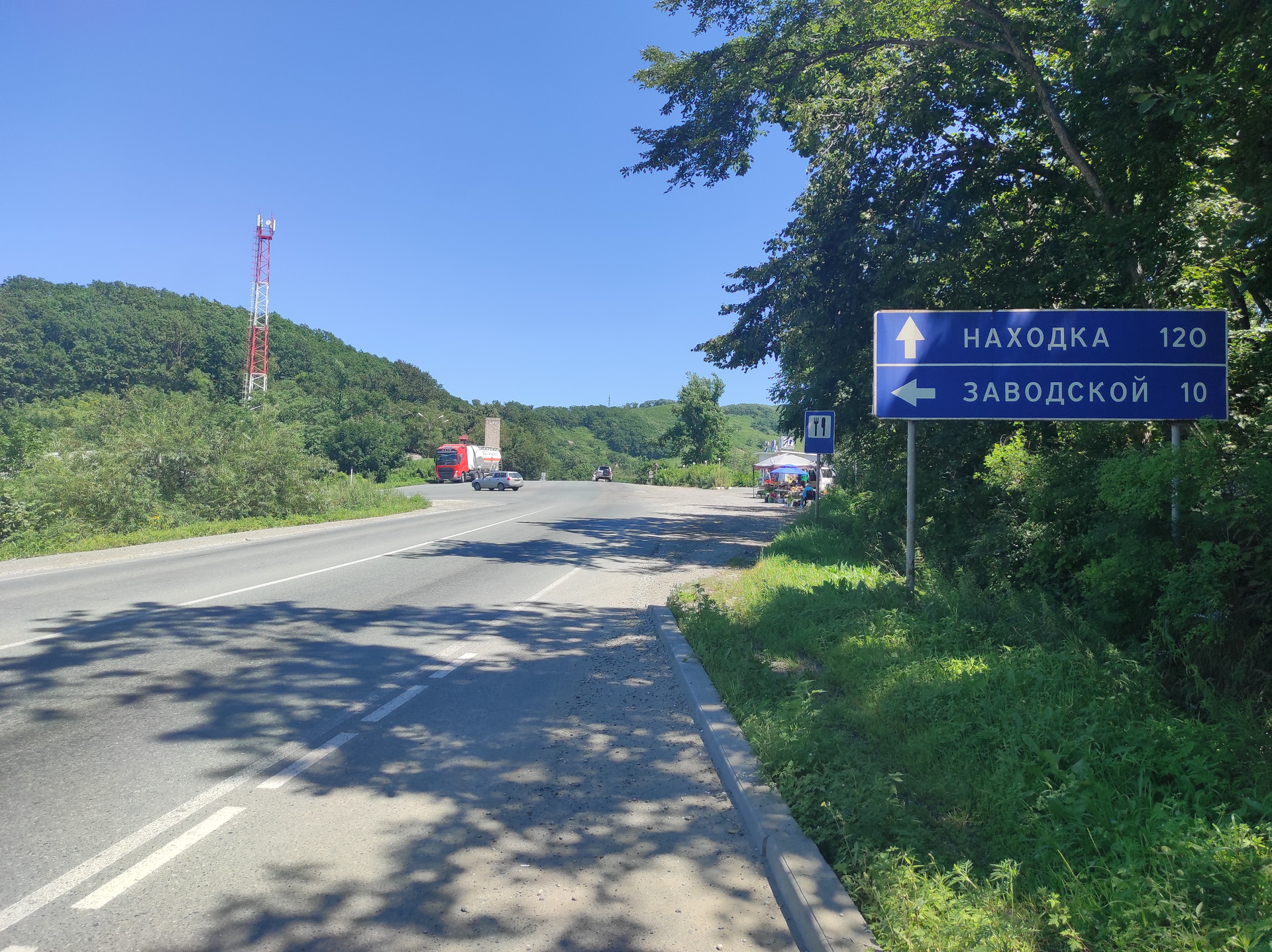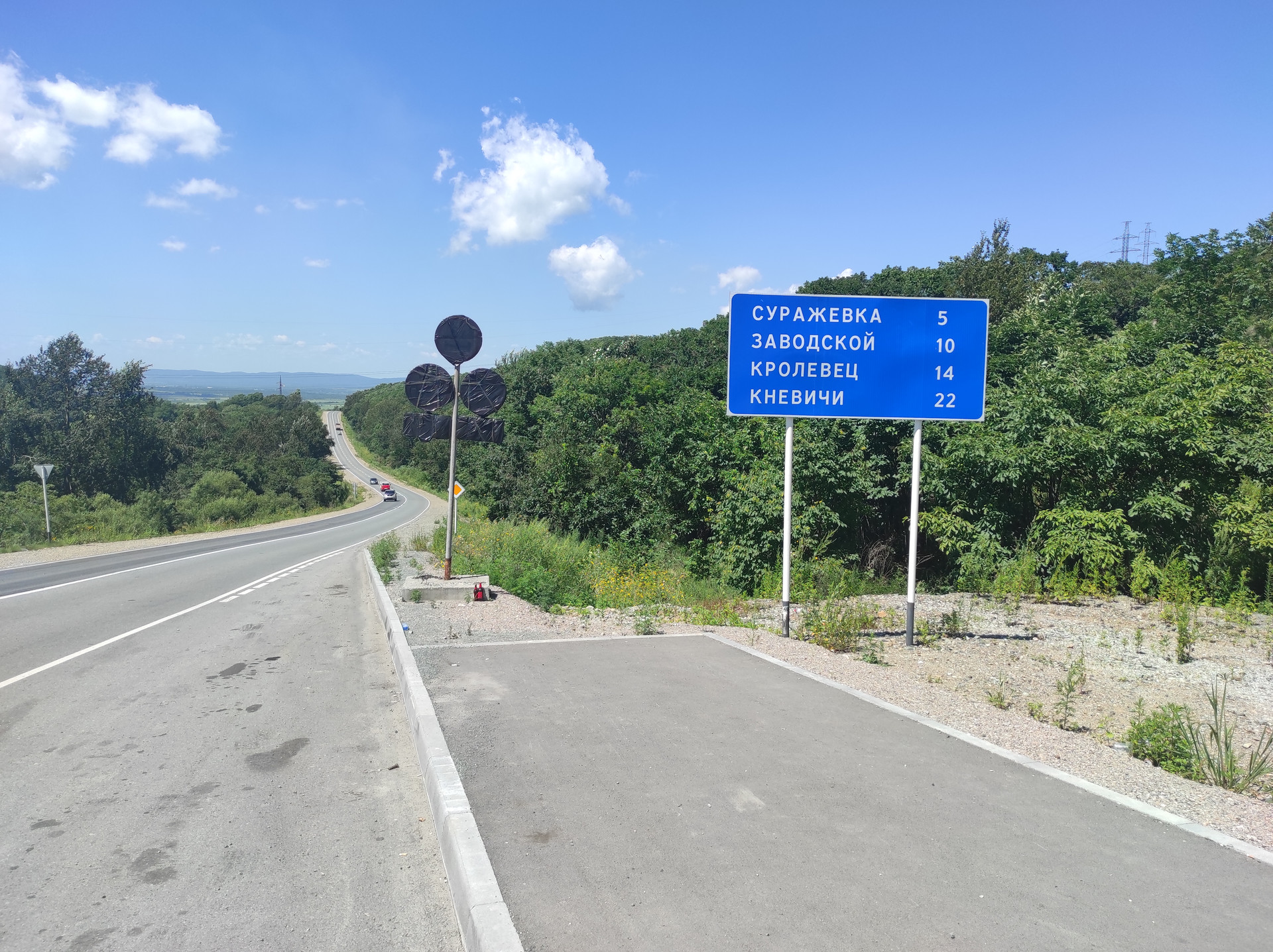 От поселка от Артема 13 км. Новый асфальт.