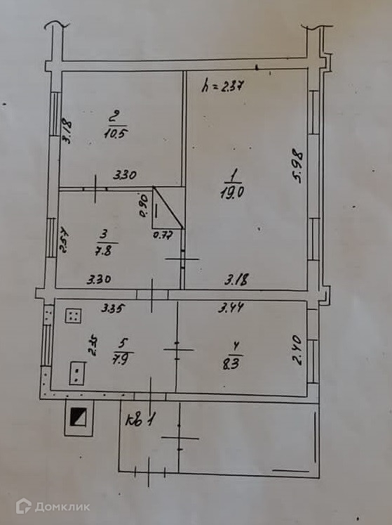 4 комнаты: 19+10,5+7,8+8,3 кв.м.