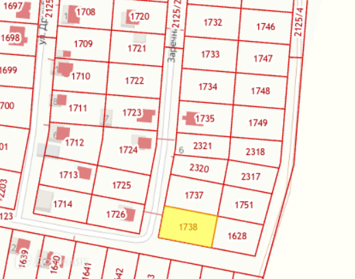 Участок расположен на улице Заречная (смотреть фото кадастровой карты, выделен желтым)
