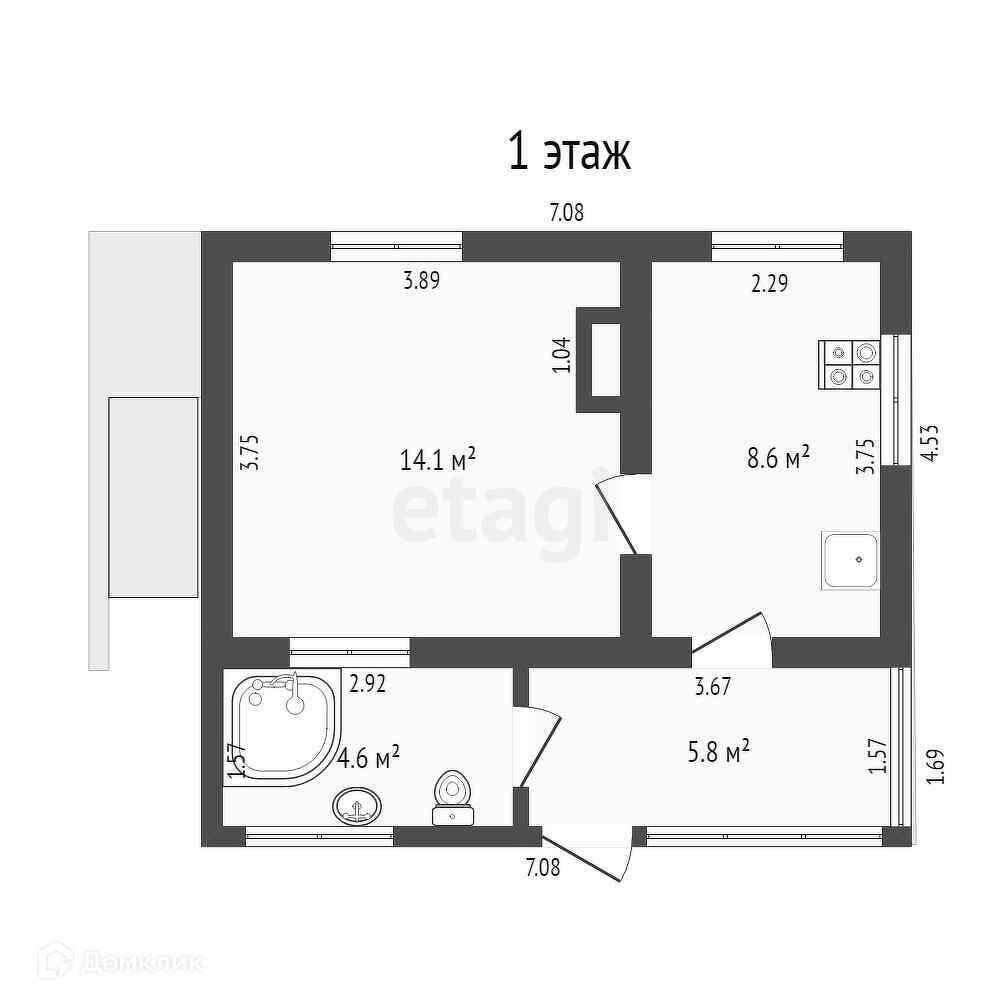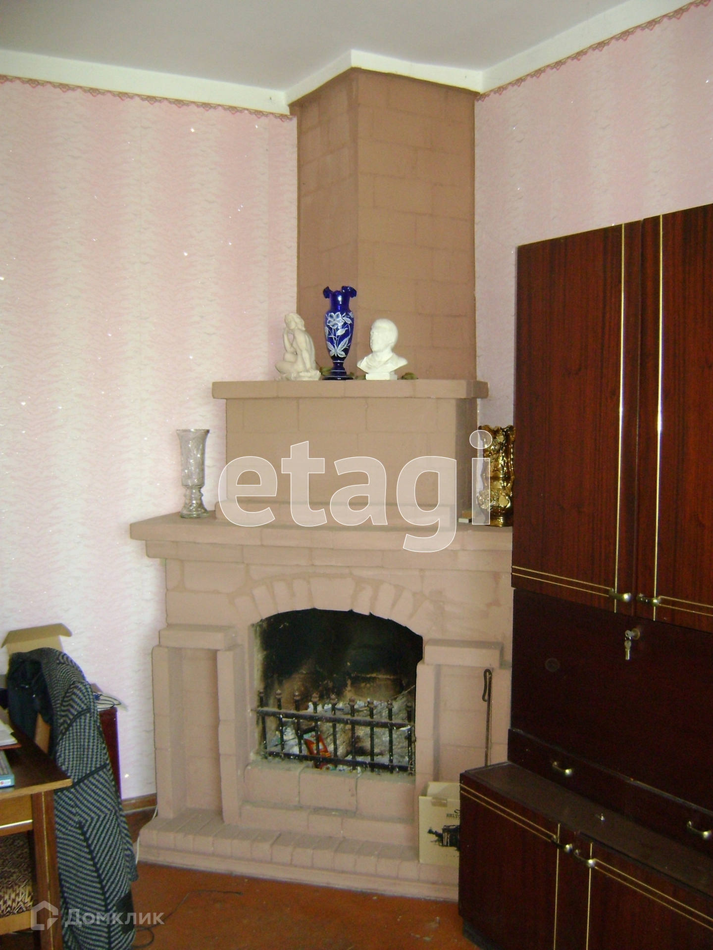 Есть четыре комнаты, кухня, санузел в доме, камин в гостиной.