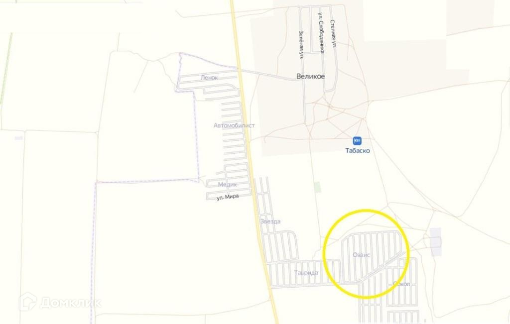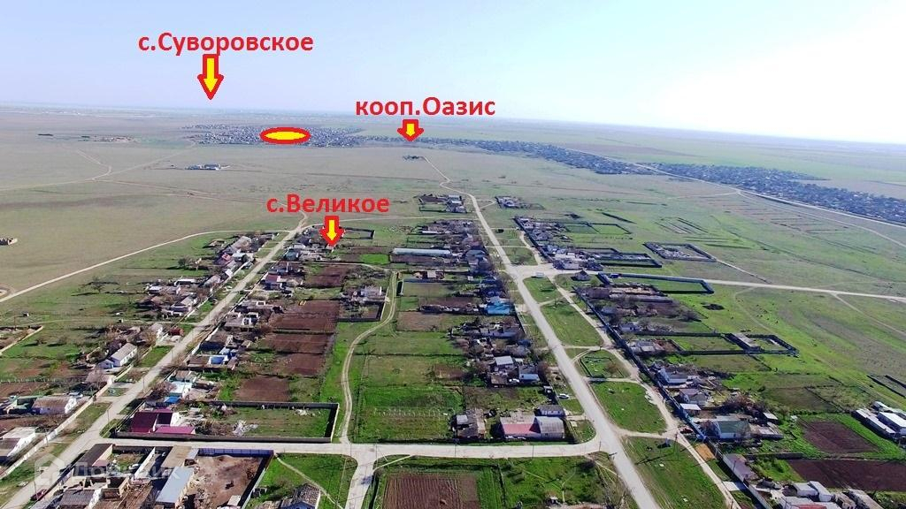 Расстояние до г. Евпатории 10 км, до с. Великое 1 км, и до моря 12км.
