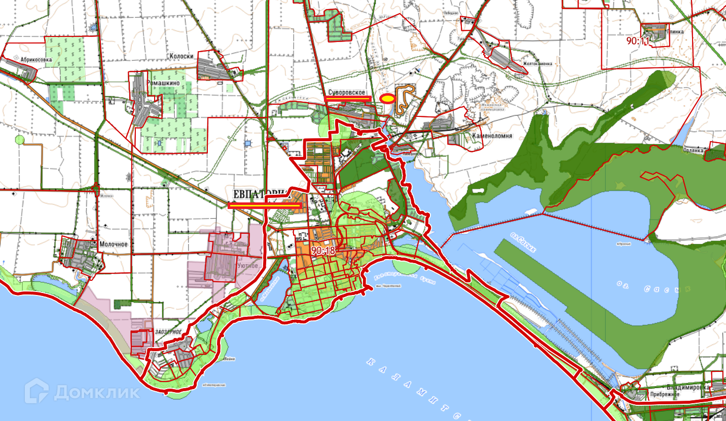 До трассы Евпатория – Раздольное 2 км. Рядом находится Международный Гоночный Комплекс “Crimea GP”.