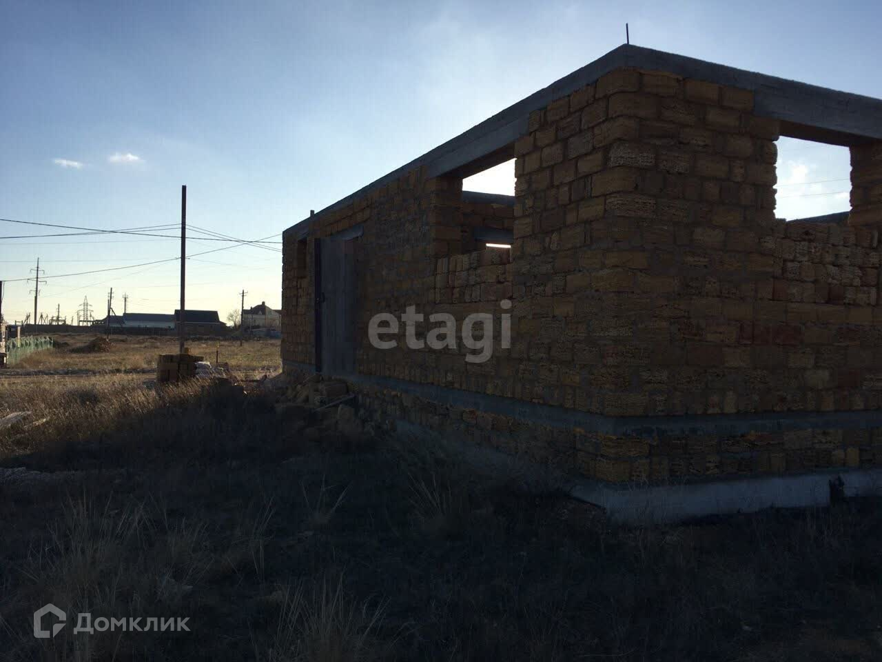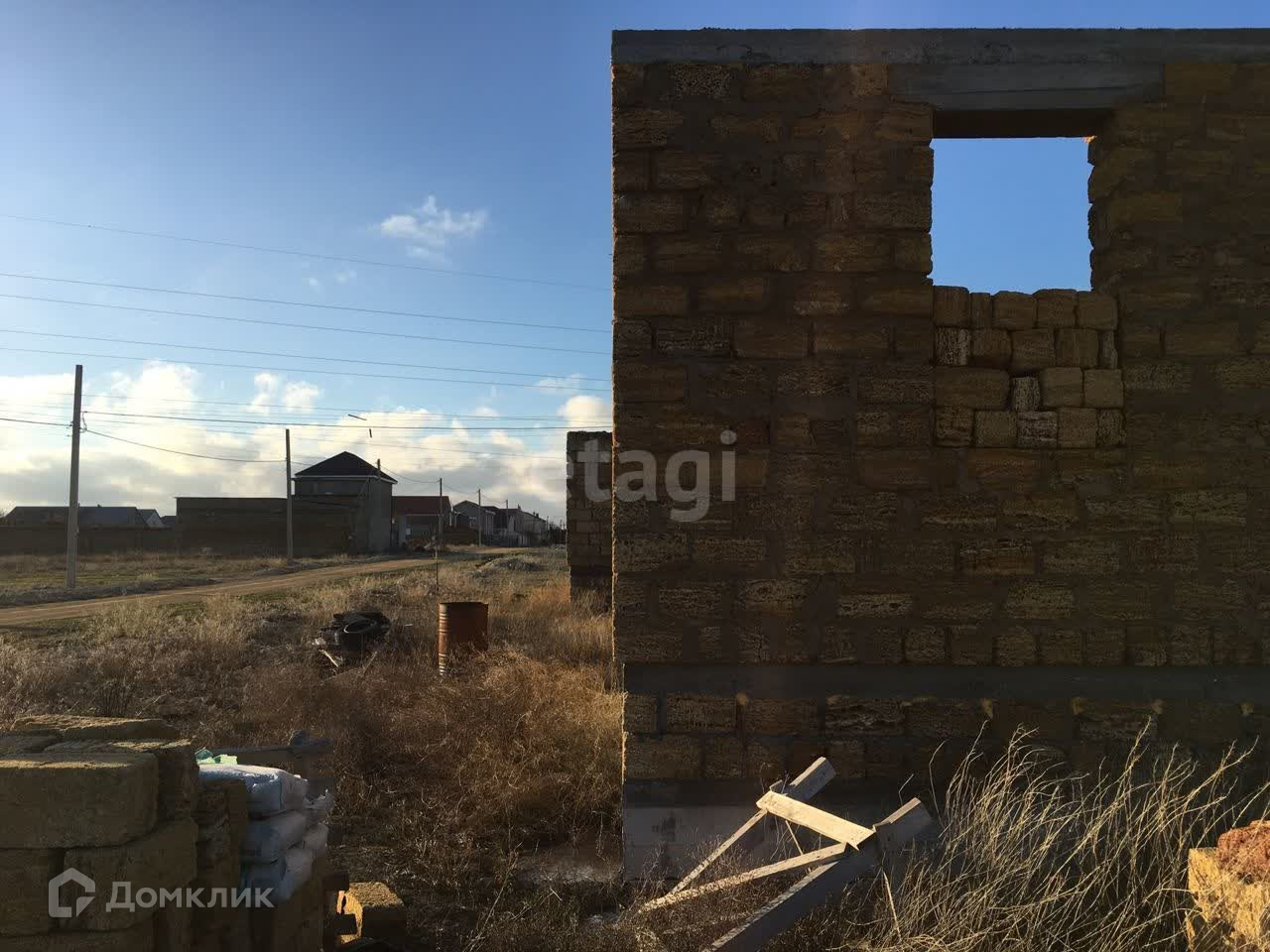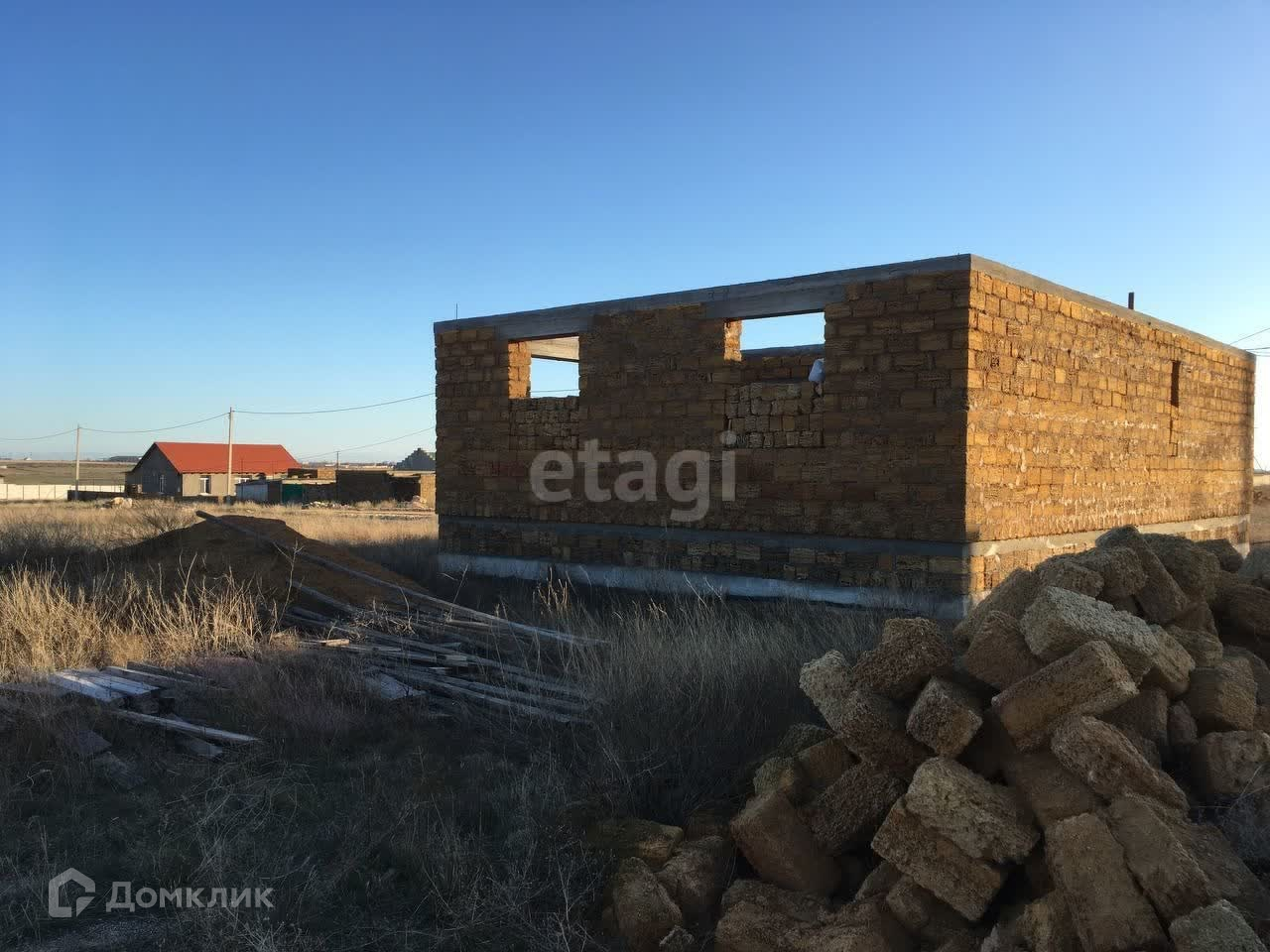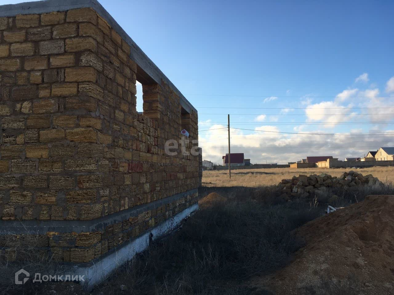 Участок ровный, прямоугольной формы. На участке стоит коробка дома размером 12,5м на 8,5м. Залит крепкий фундамент, возможно строительство второго этажа.