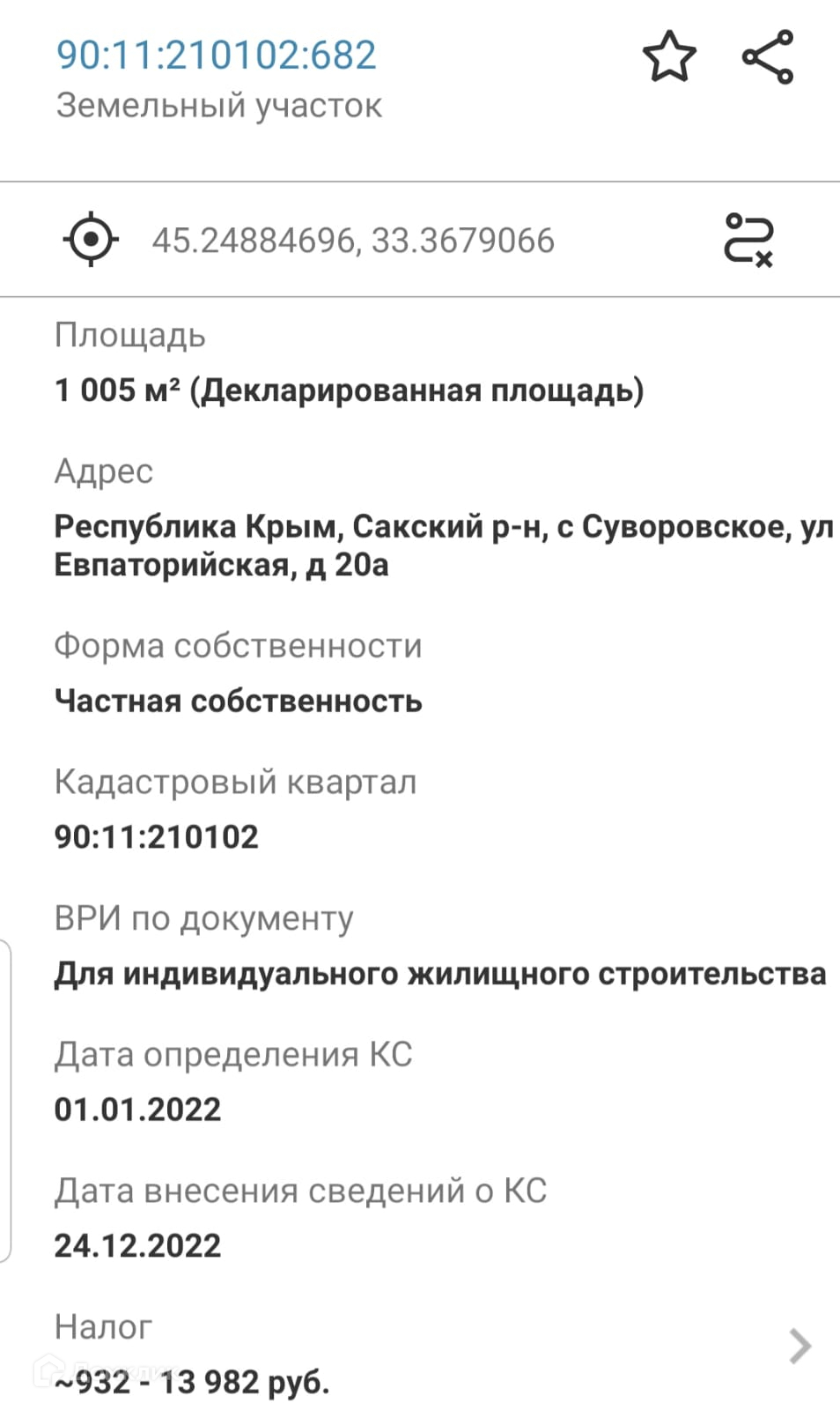 Участок под ИЖС, 10 сот. на продажу в селе Суворовском, Евпаторийская улица, 2