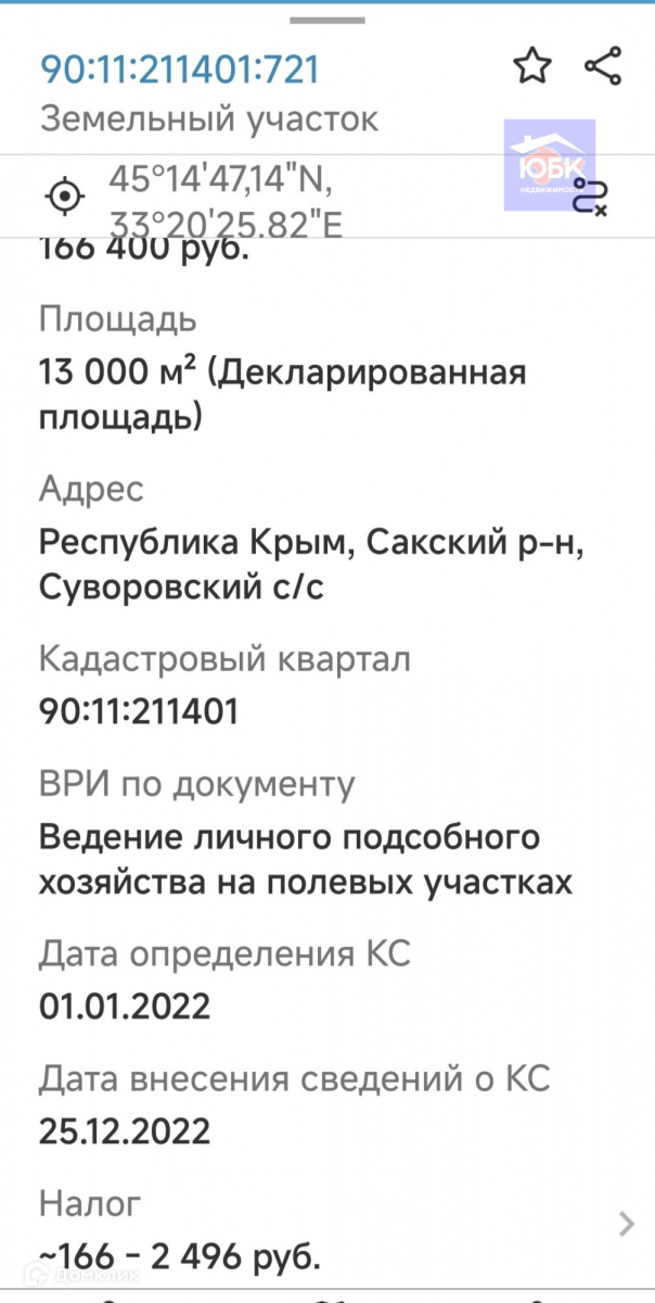Площадь участка 13000 сот.