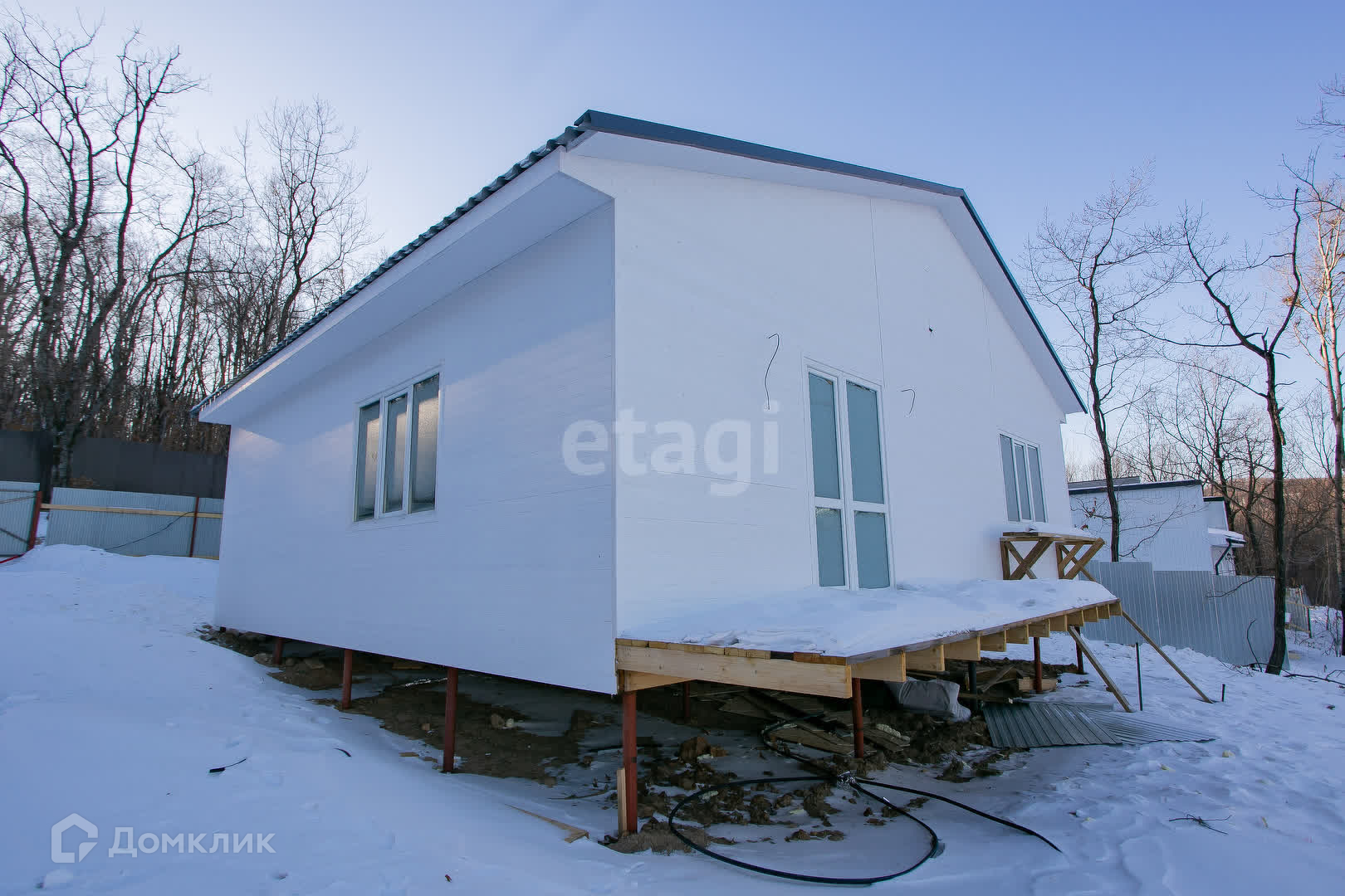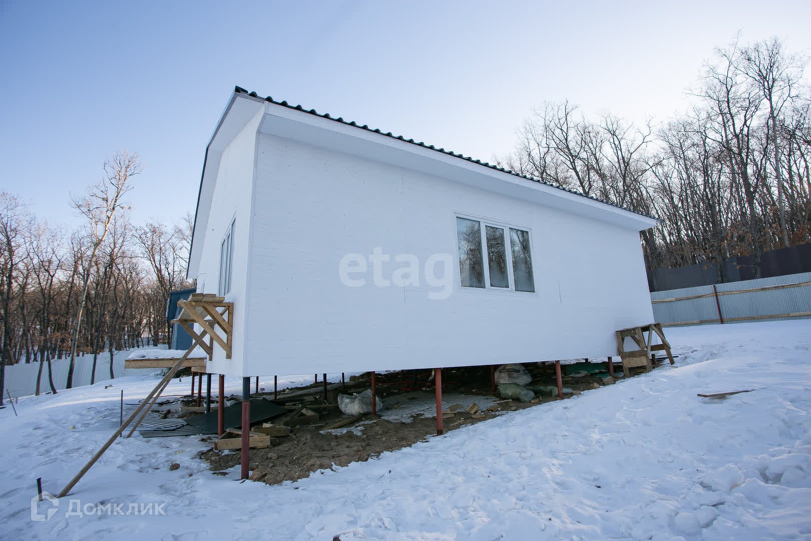Утеплитель пенопласт, фундамент свайный. Выполнена предчистовая отделка.