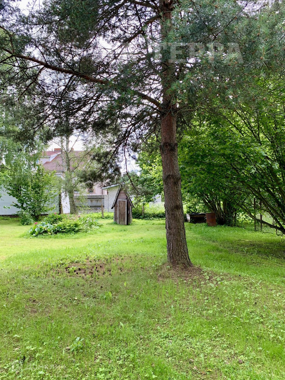 Участок правильной формы, огорожен. Дом каркасный, годен для проживания.