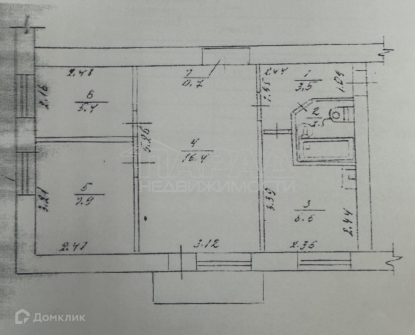 Жилая площадь 29.7 м2