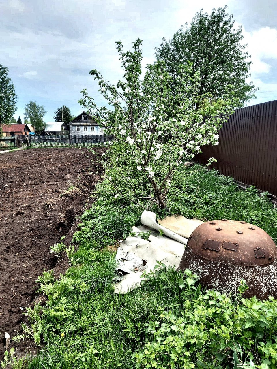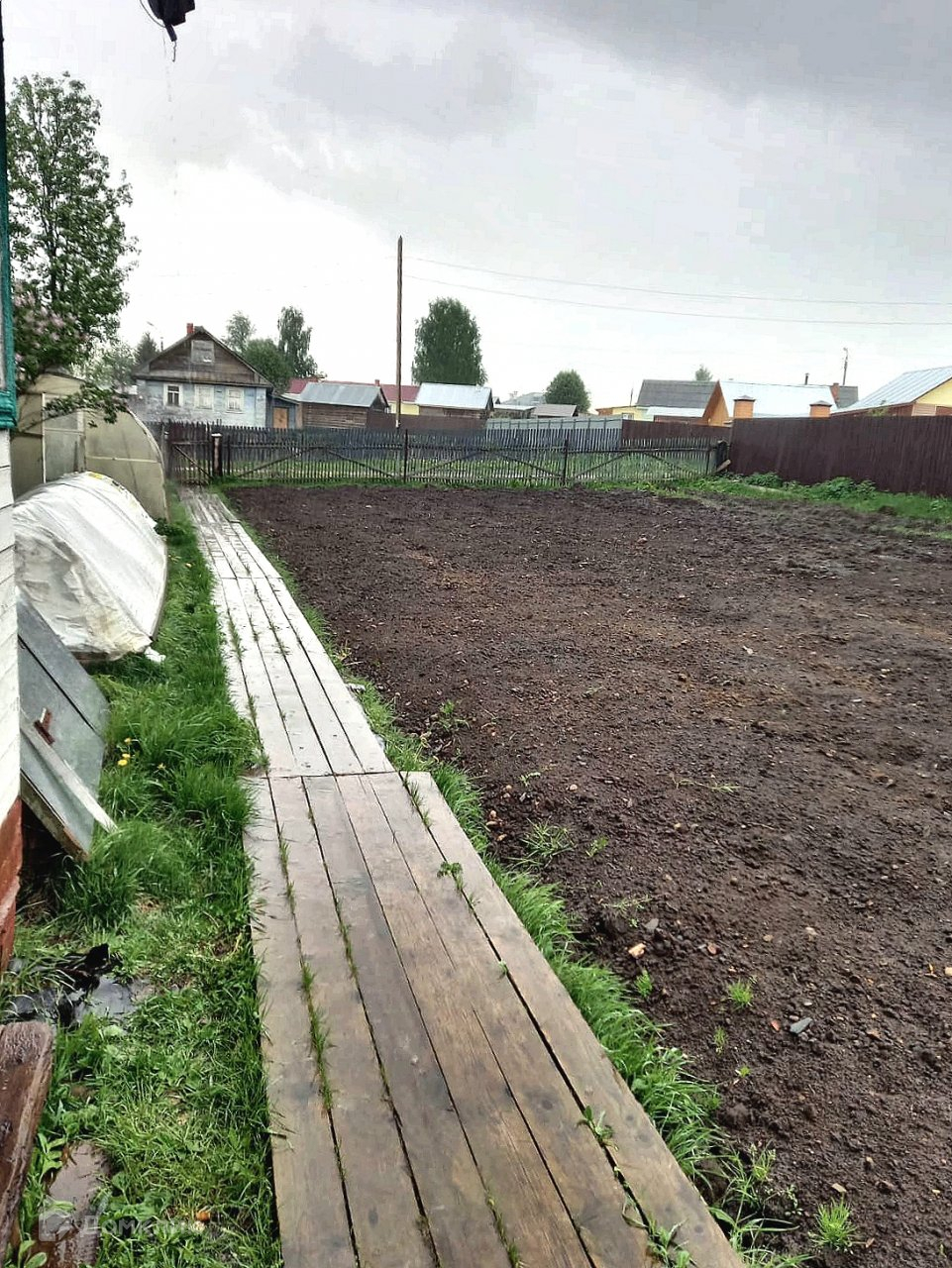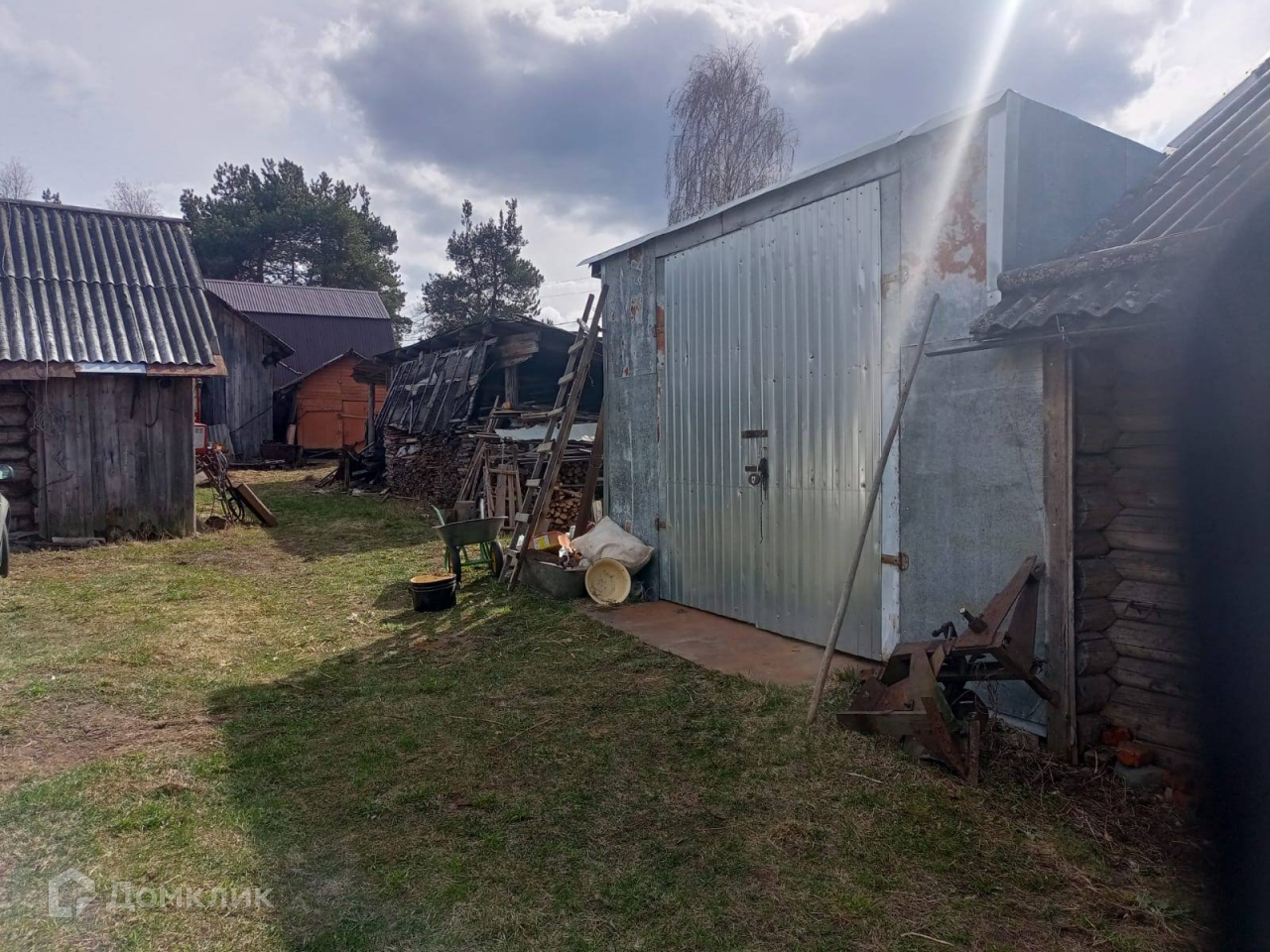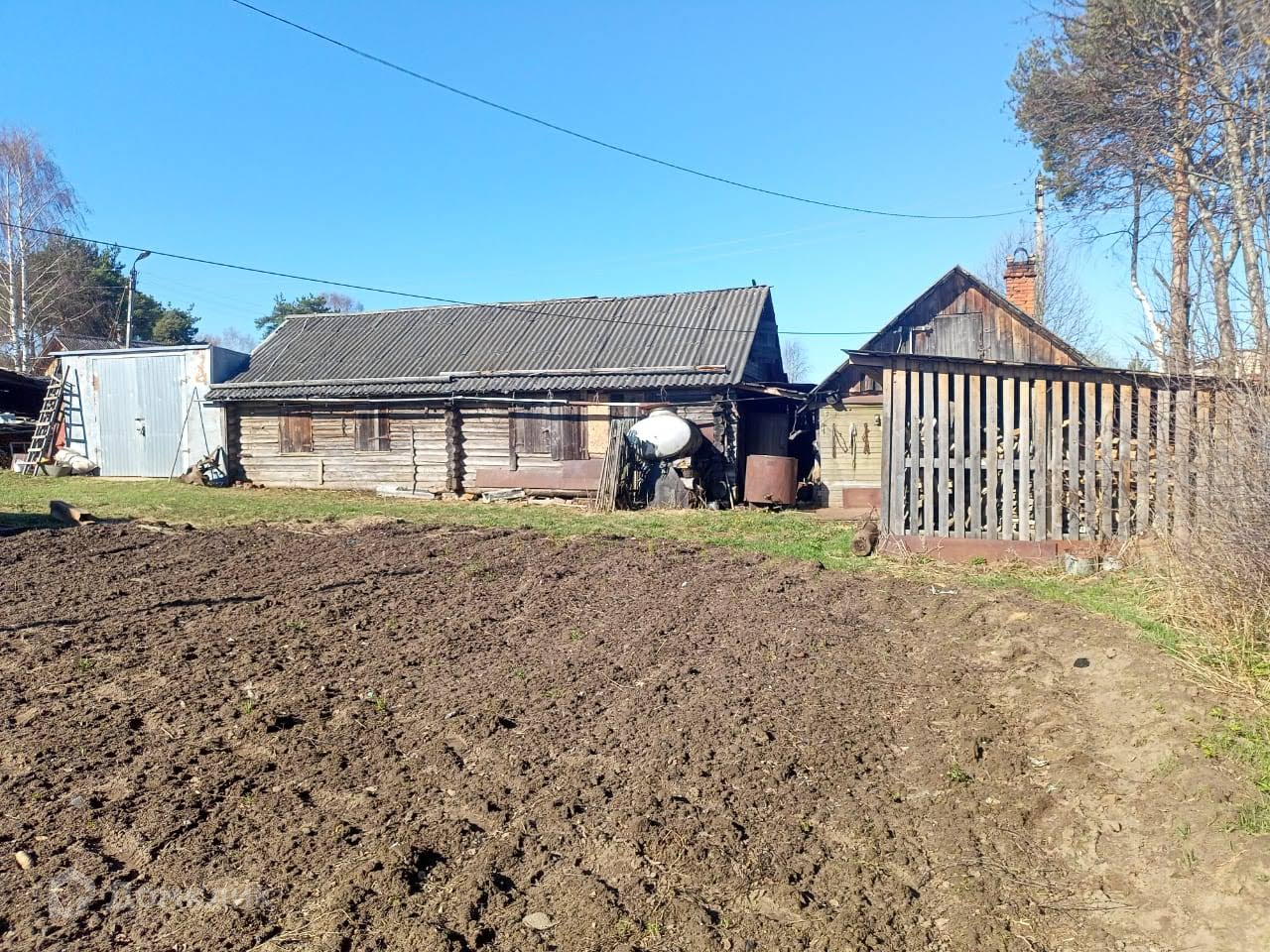 На двух участках 24 сотки (15+9 для ЛПХ) расположены дом (59,8м), баня, три гаража и хозпостройка (61,6м). Водоснабжение - колодец, отопление печное (русская и столбянка), фундамент ленточный. Дом крепкий и теплый.
