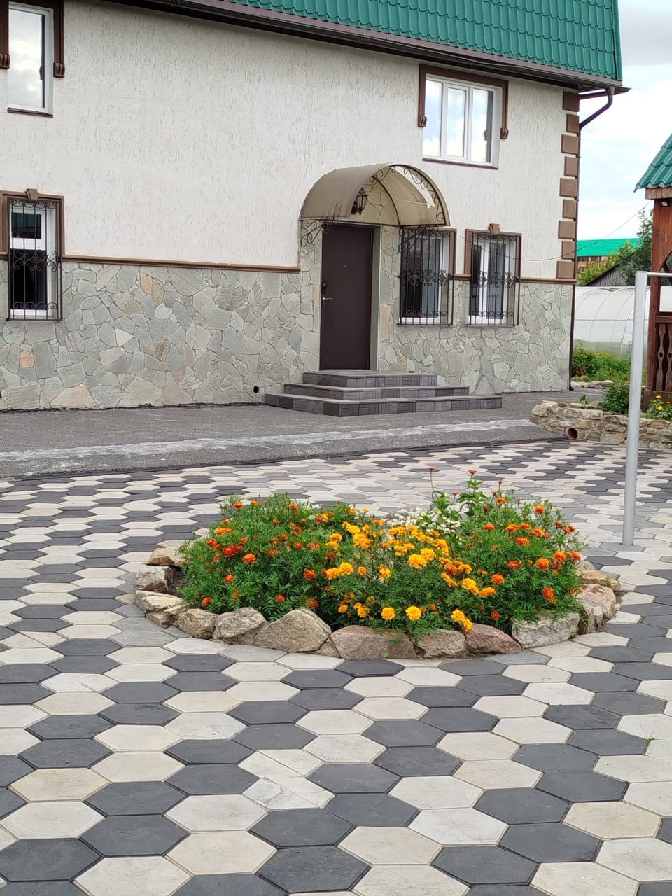 На придомовой территории везде уложен асфальт и плитка,обустроена парковка.
