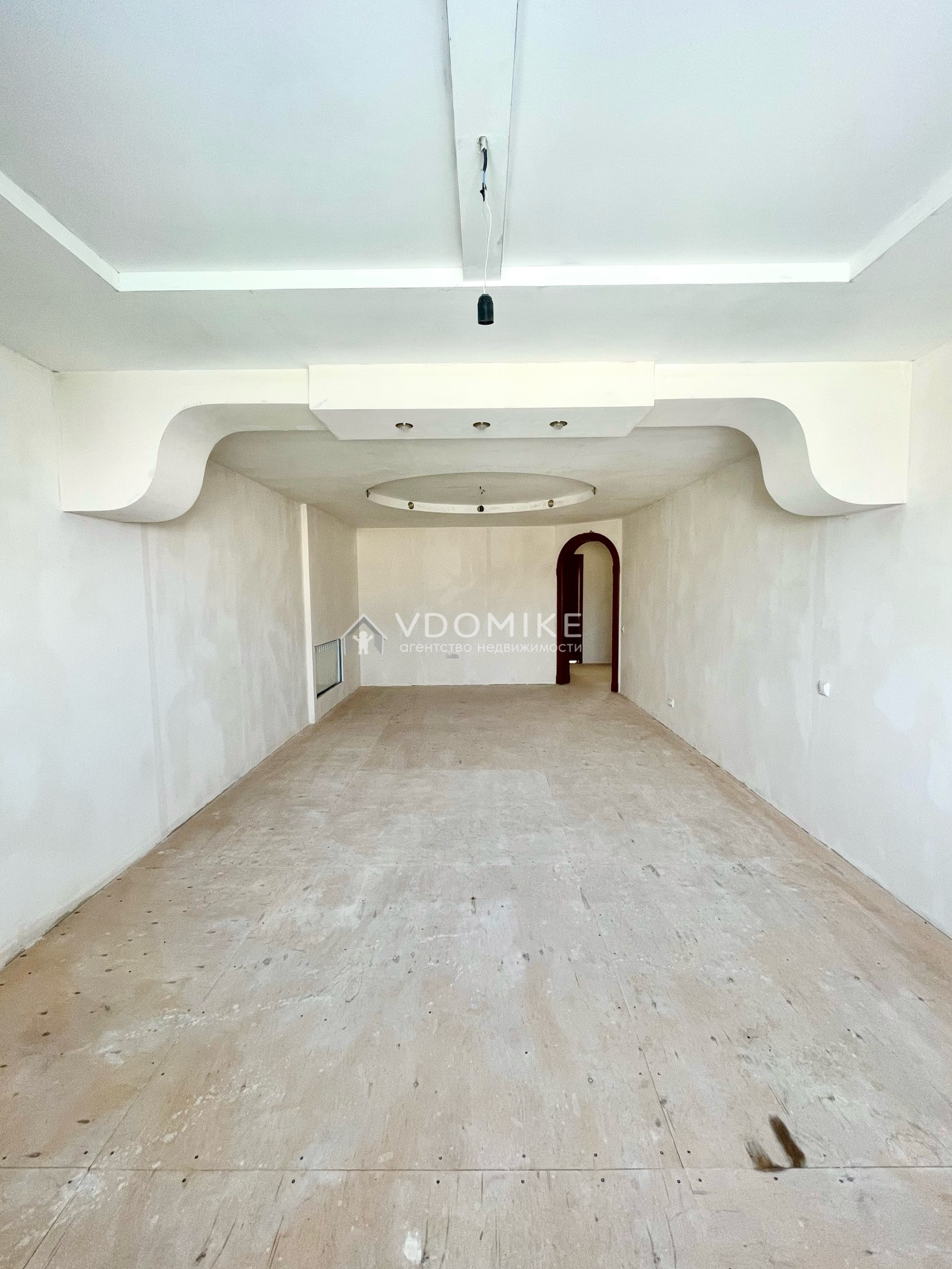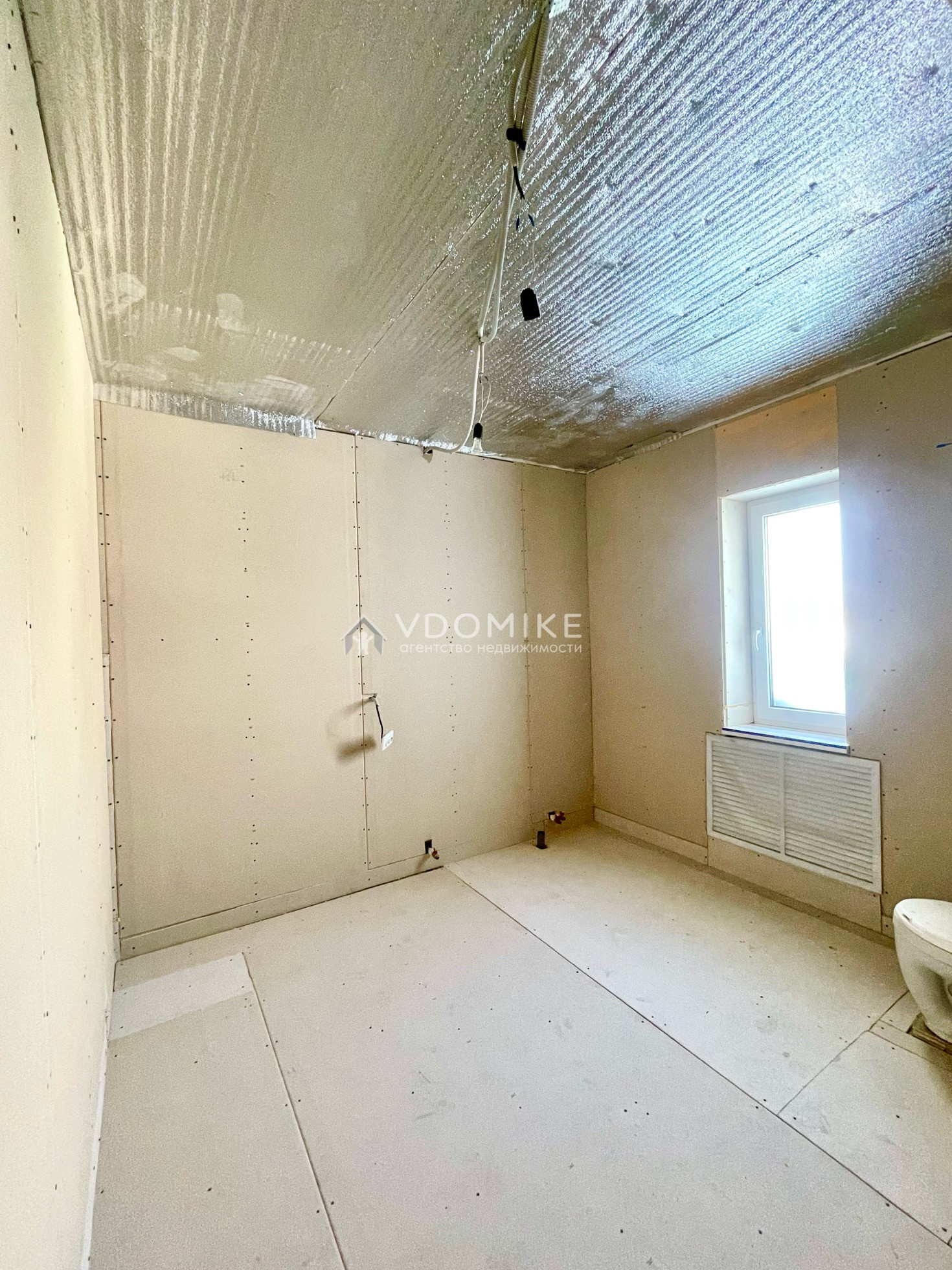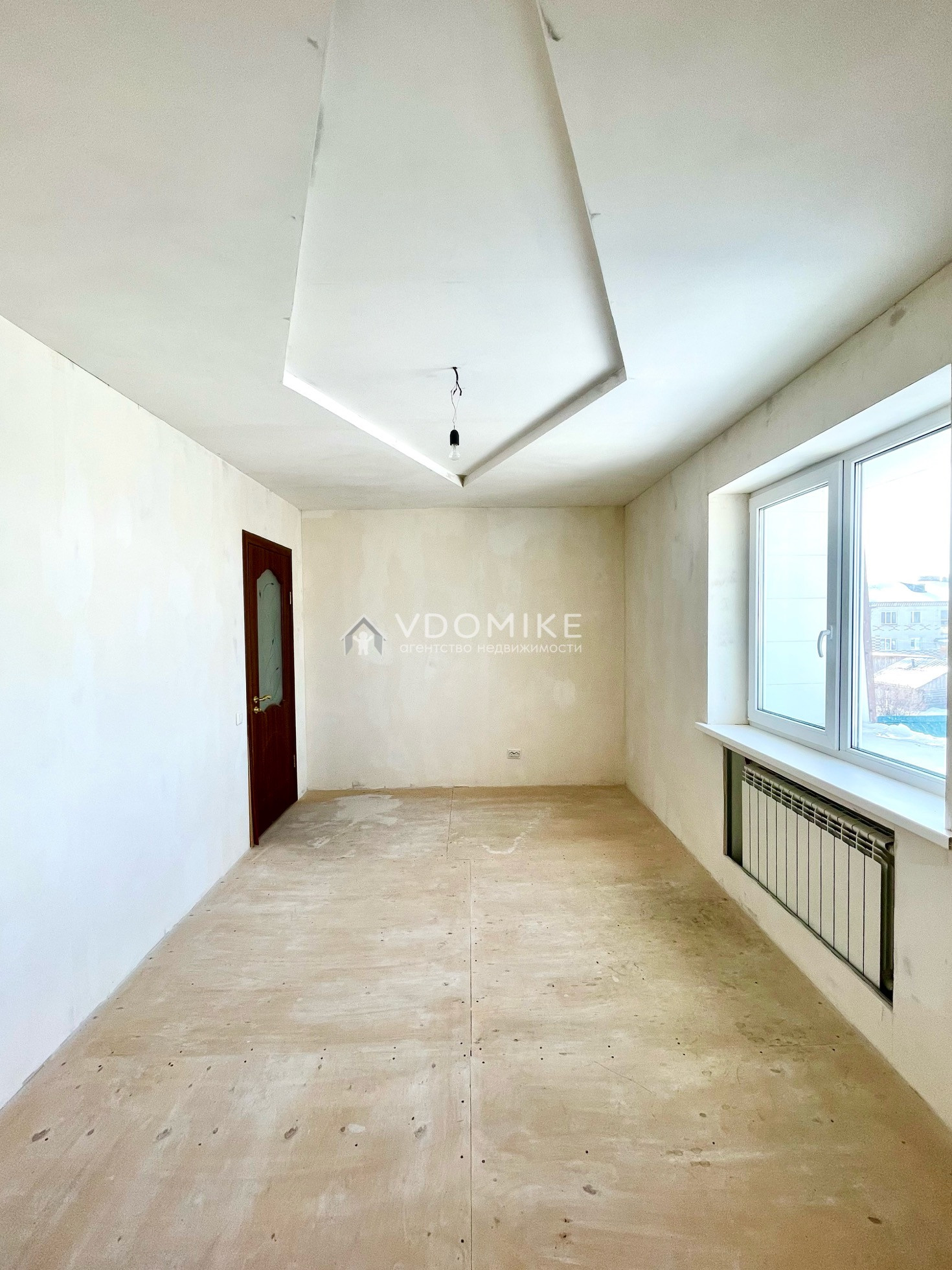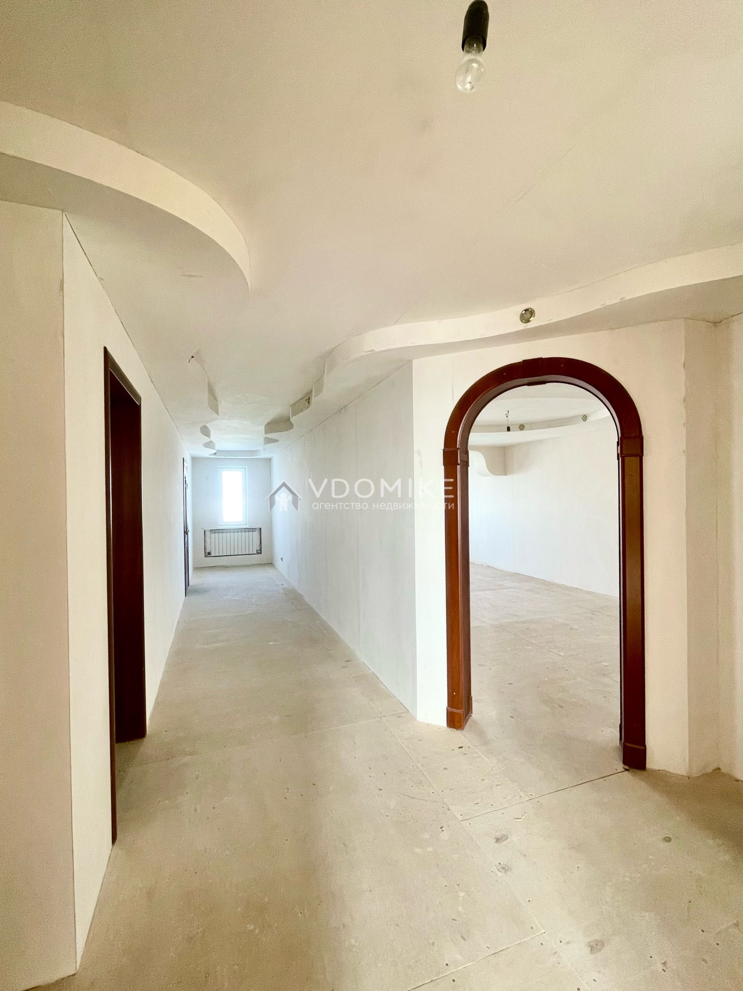 В доме комнаты с предчистовой отделкой: стены выровнены двойным гипсокартоном и готовы к финишной отделке (обои и пол на ваш вкус), потолки разноуровневые с точечными светильниками.