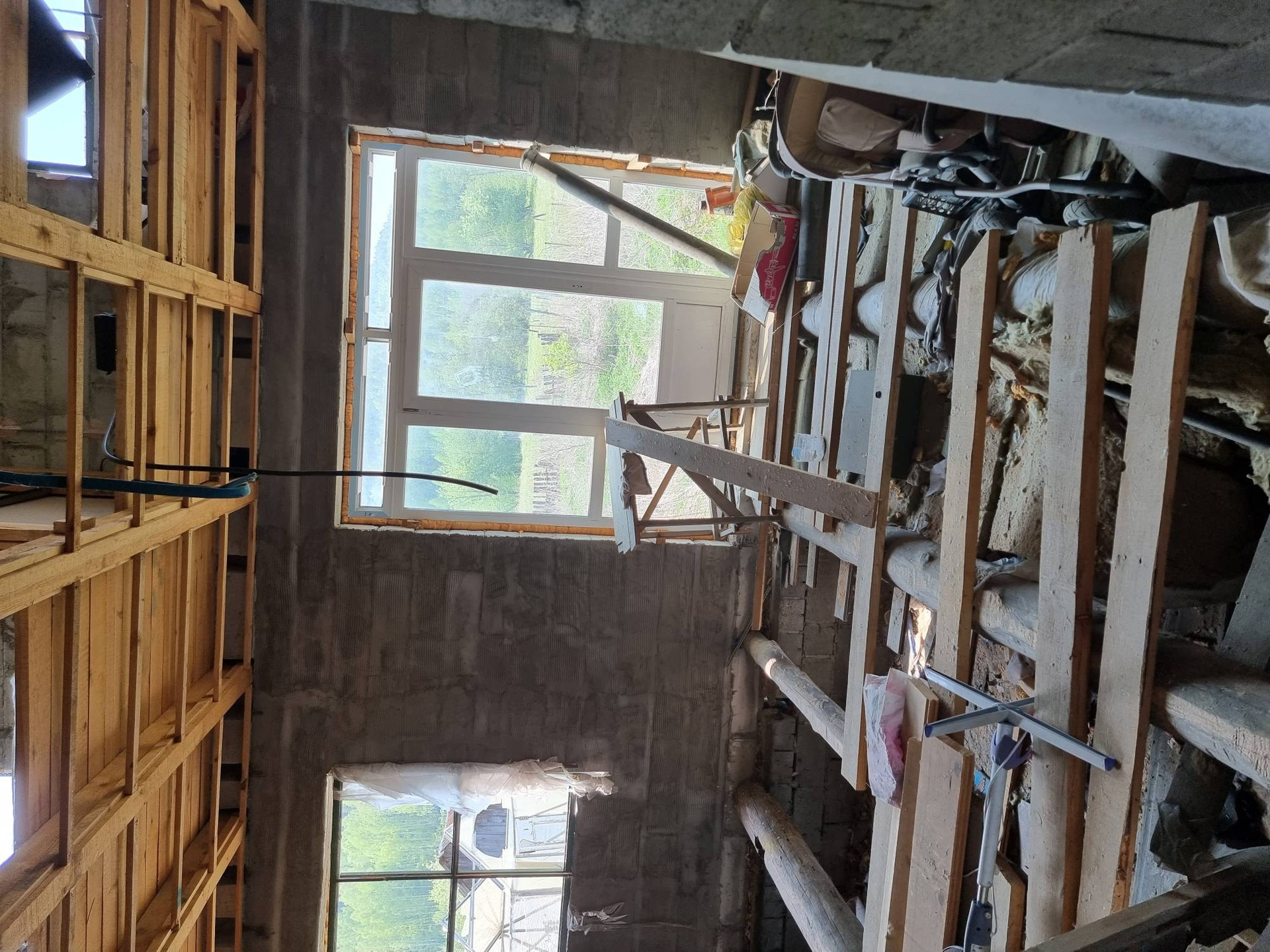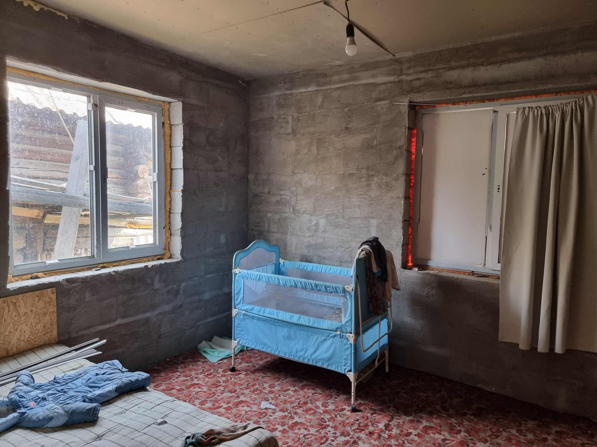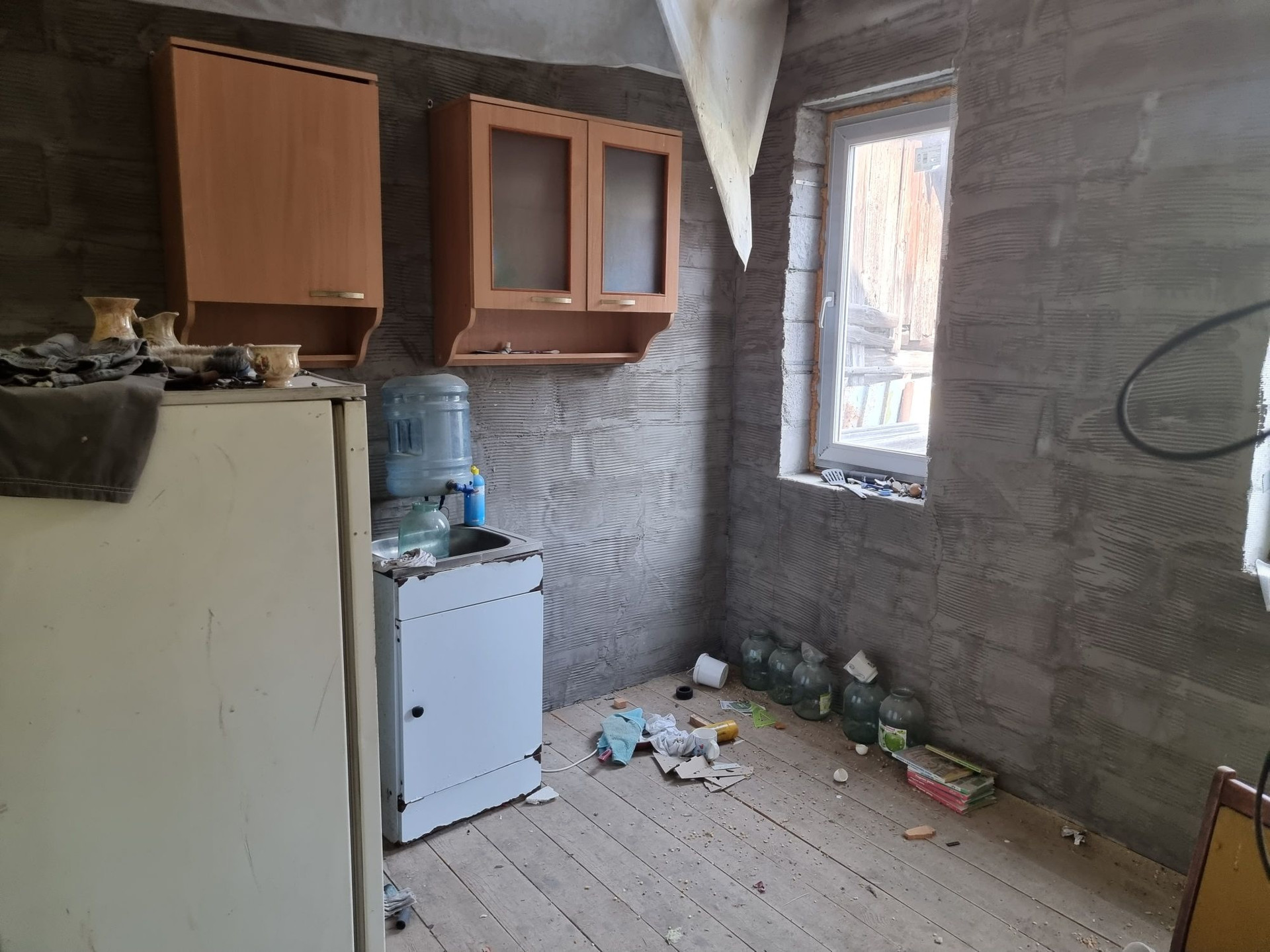 Капитальные окна только со стороны дороги, остальные временные, под замену, частично окна отсутствуют.