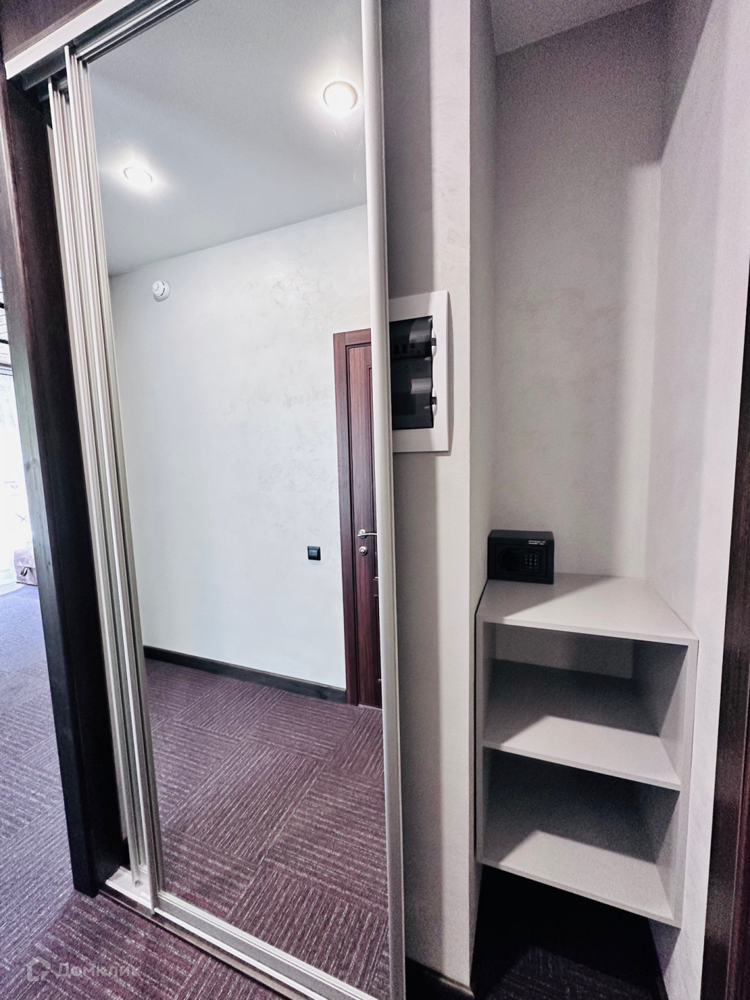 в спальне установлен шкаф купе и кровать, так же есть постельное белье