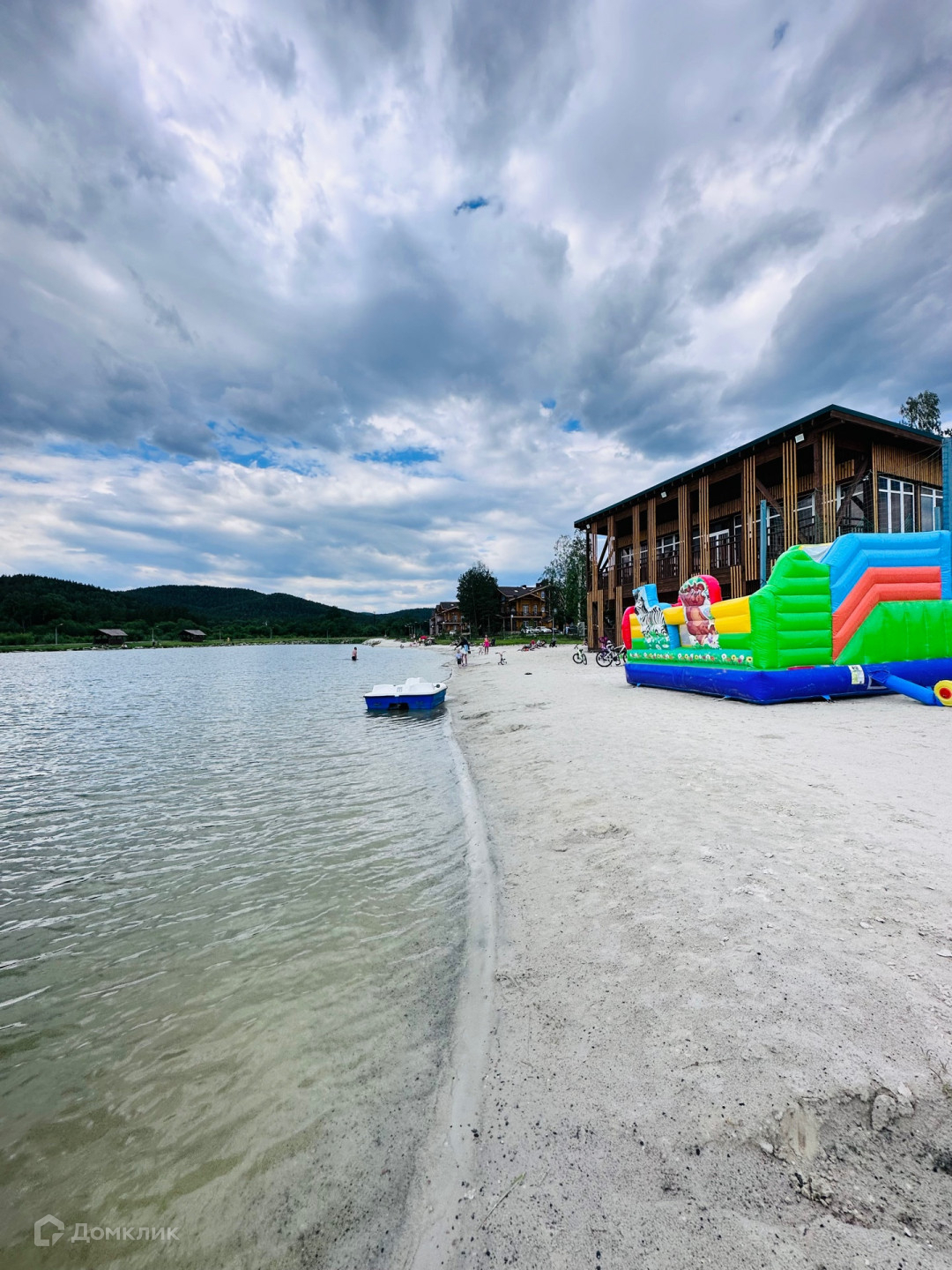 На территории курорта,, Солнечная долина ,, есть собственный водоем с песчаным пляжем,
