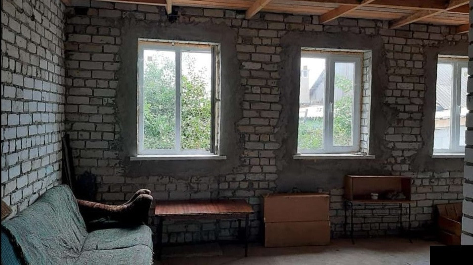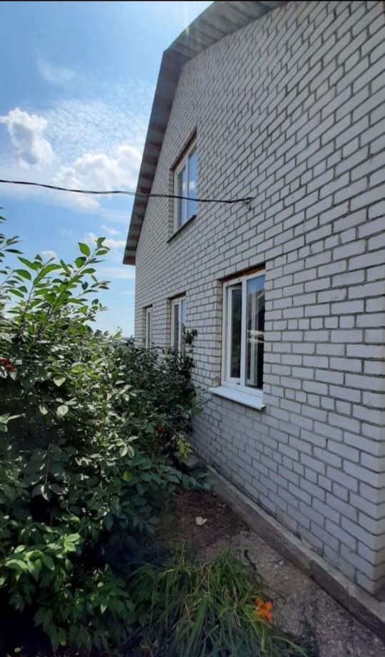Дом новый, из силикатного кирпича, с мансардой, крыша из металла (цвет вишня), окна пластиковые, дверь металлическая. Черновая отделка, проведены вода и электричество (380 В), газ проходит по улице, имеется сливная яма.