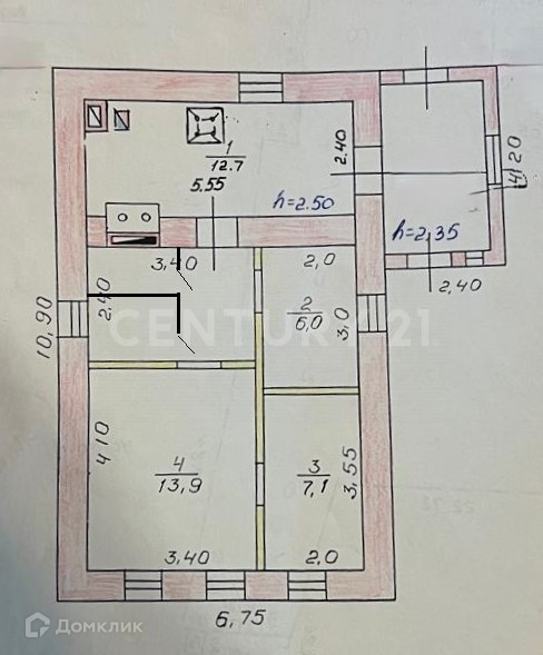 Высота потолков 2.5 м