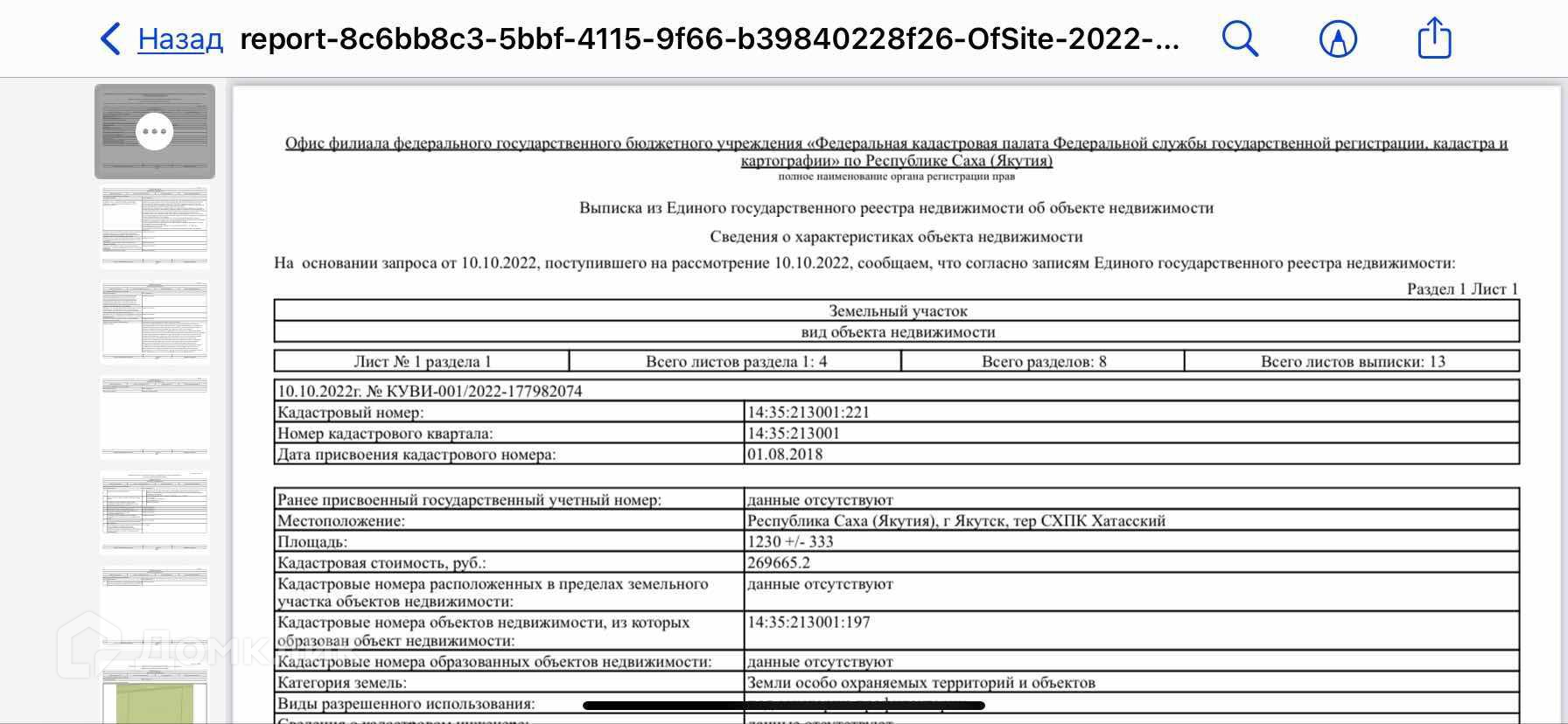 Стоимость недвижимости: