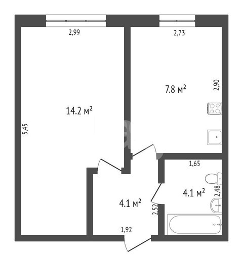Общая площадь 27.4 м2