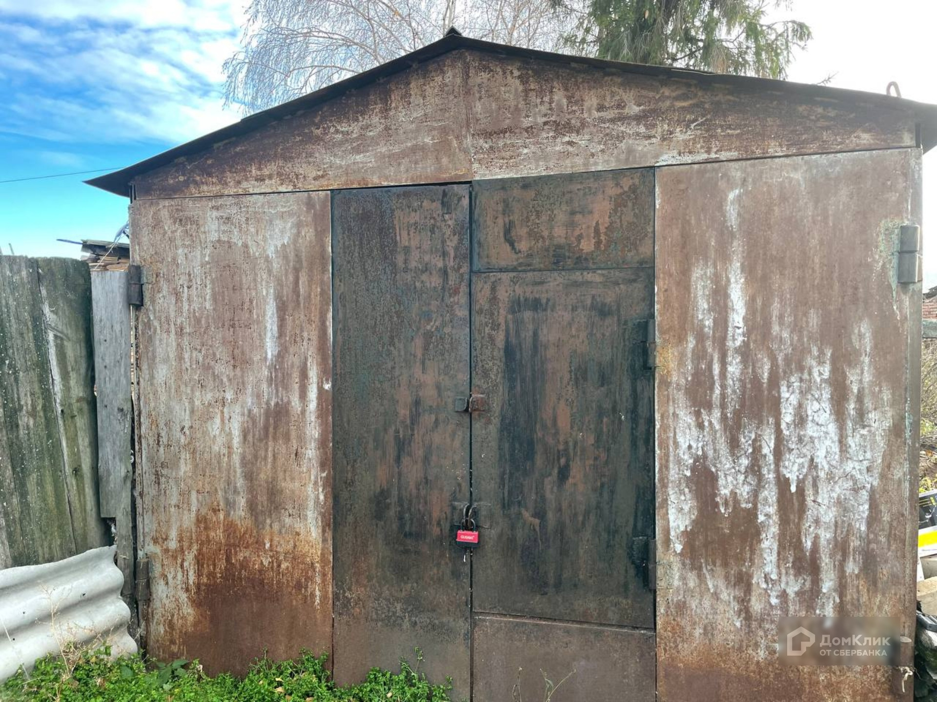 Во дворе металлический гараж.