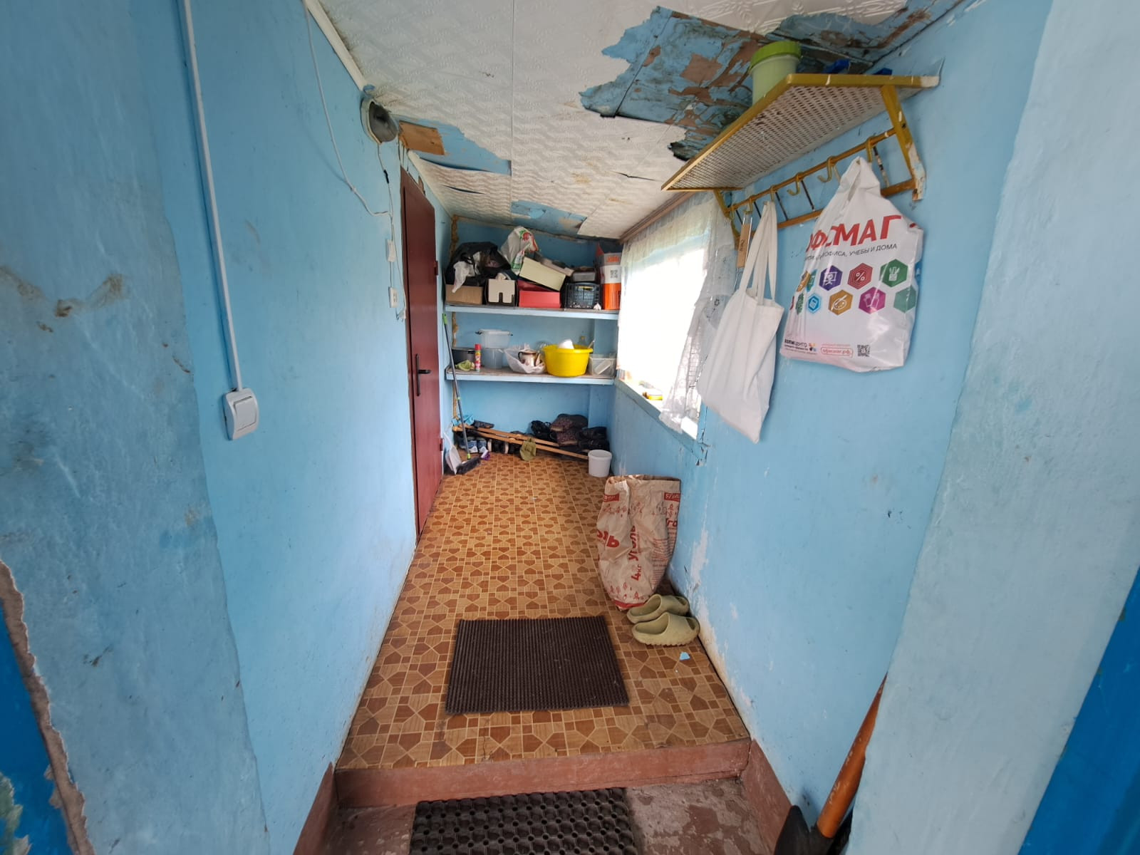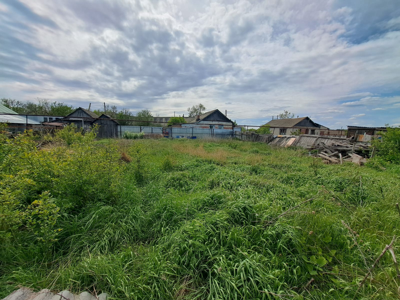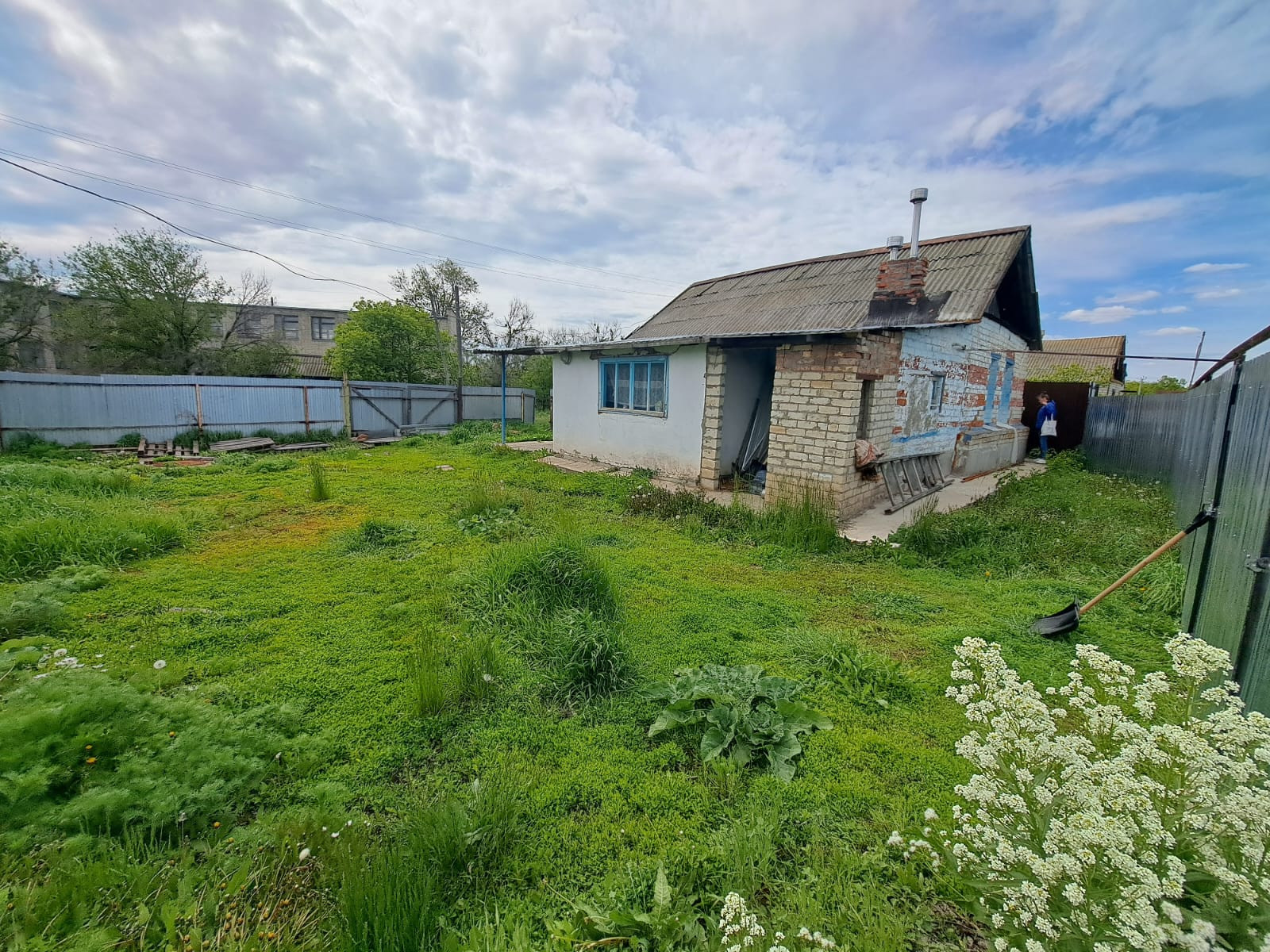 Навес и большая зеленая зона во дворе. Сарай.
