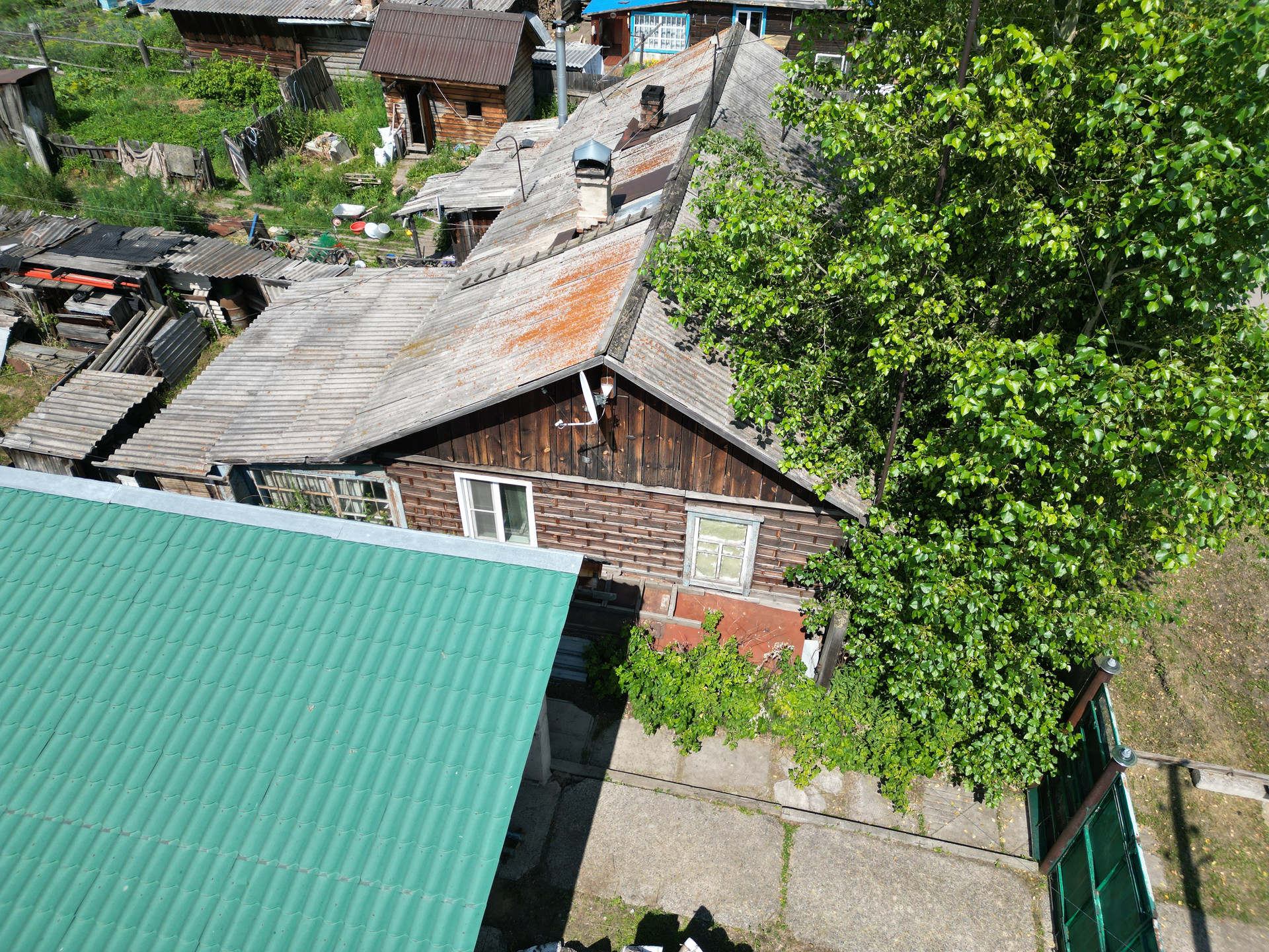 На участке площадью 9 соток расположены 2 гаража, баня, хозпостройки. Недалеко от дома находятся школа и детский сад.