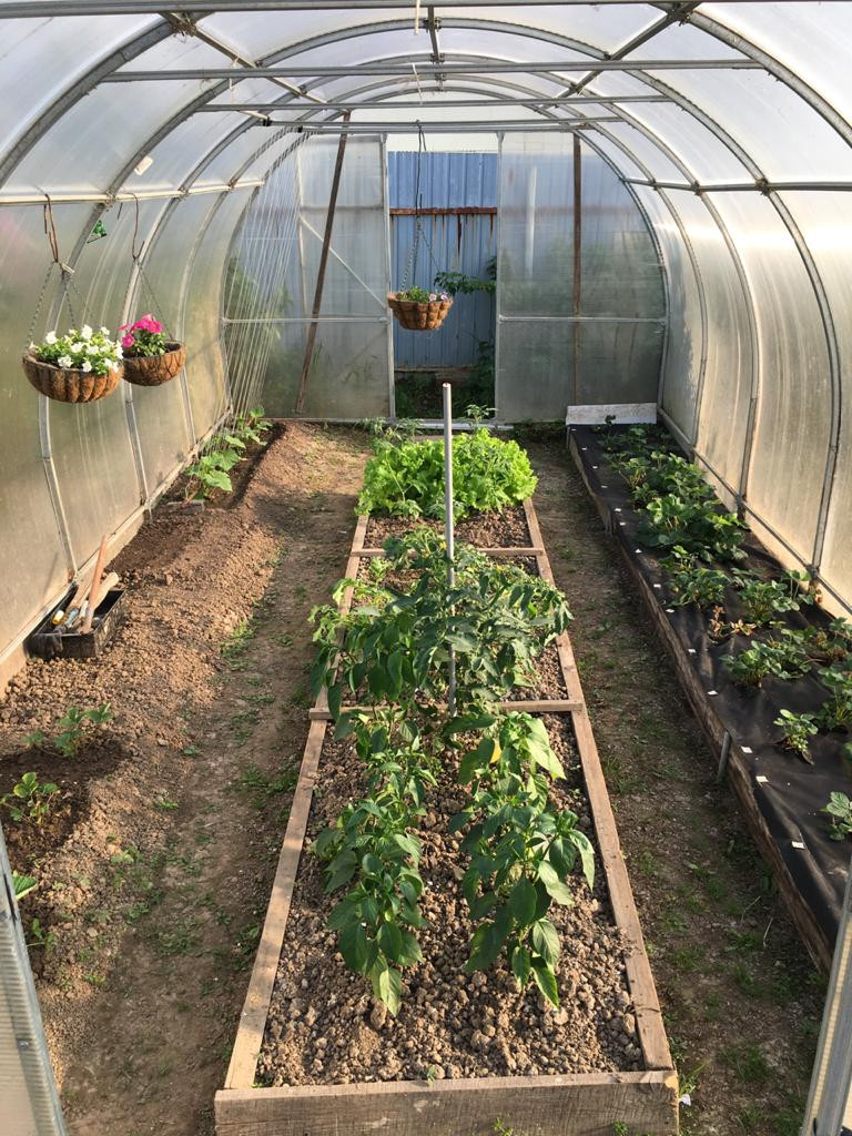 Участок по всему периметру обнесён железным забором, на участке плодово-ягодные насаждения, теплица, садовый инвентарь.